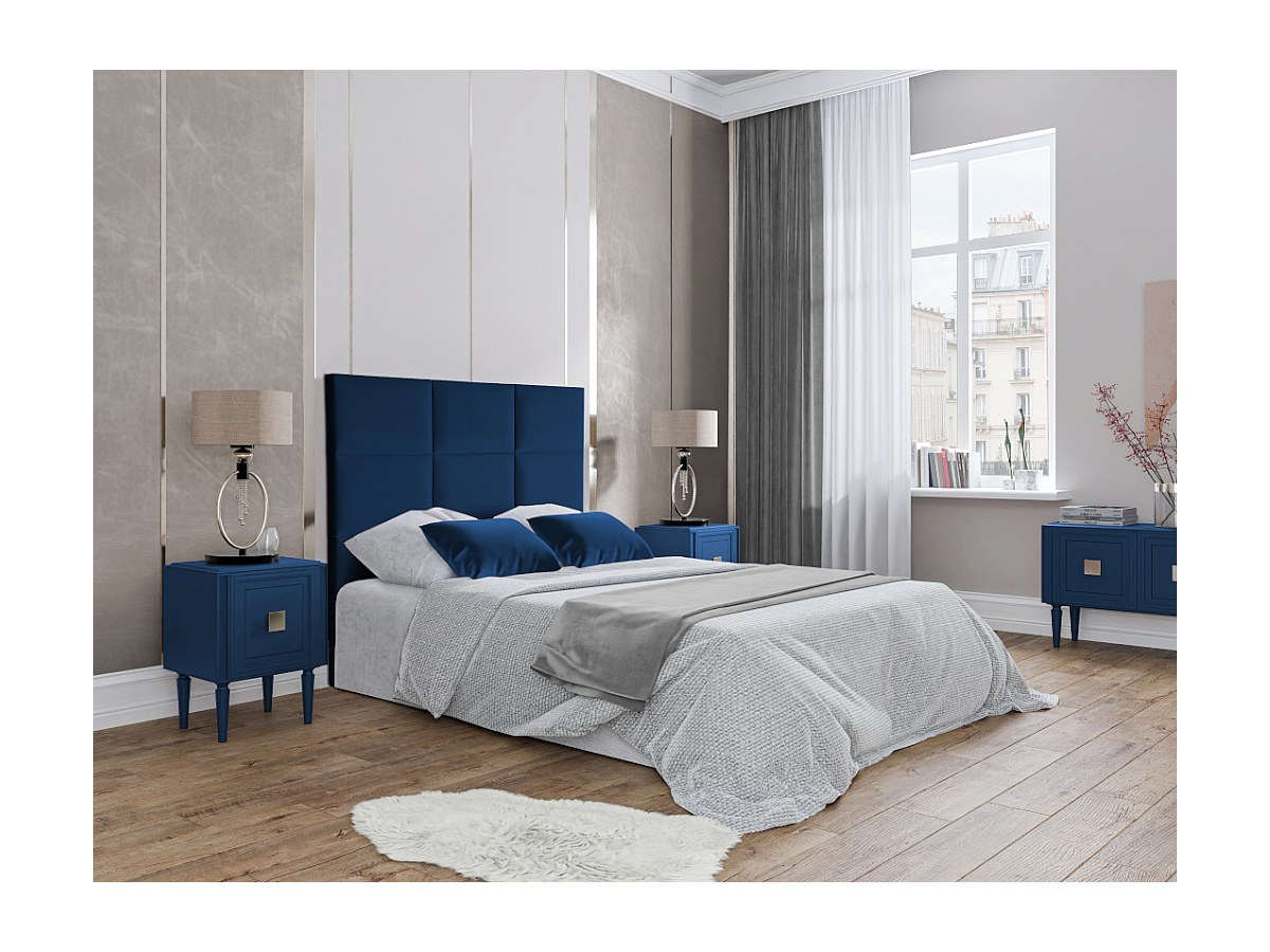 Bett-Kopfteil mit USB-Anschlüssen KARY - 140 cm - Samt - Dunkelblau