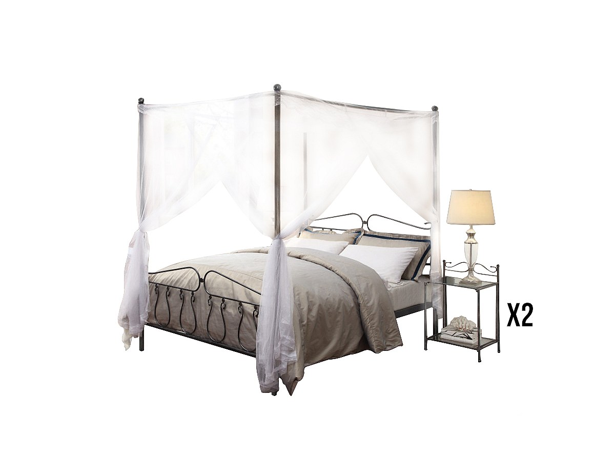 Sparset MARQUISE: Himmelbett 140 x 190 cm + 2 Nachttische