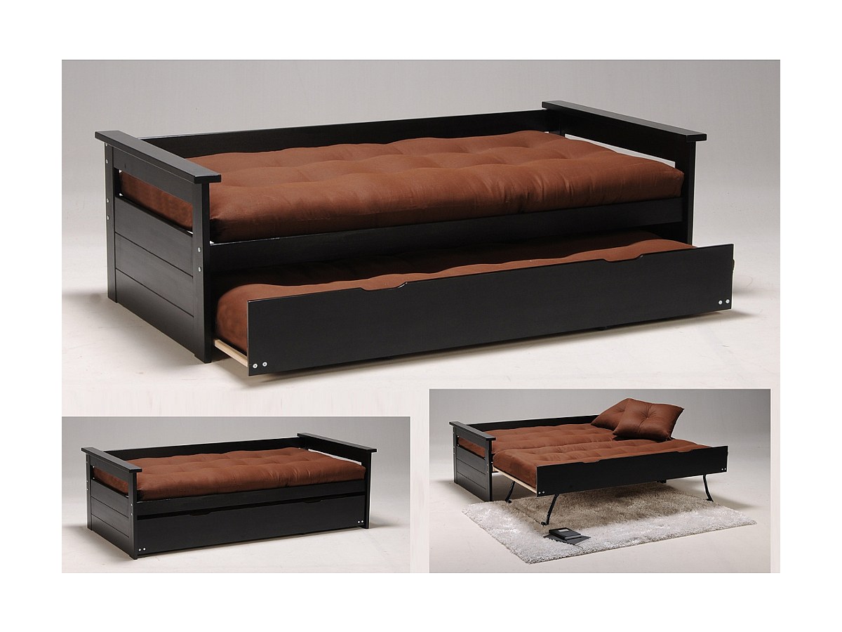 Ausziehbett ALFONSO - 90x190cm - MDF & Tanne - Schwarz
