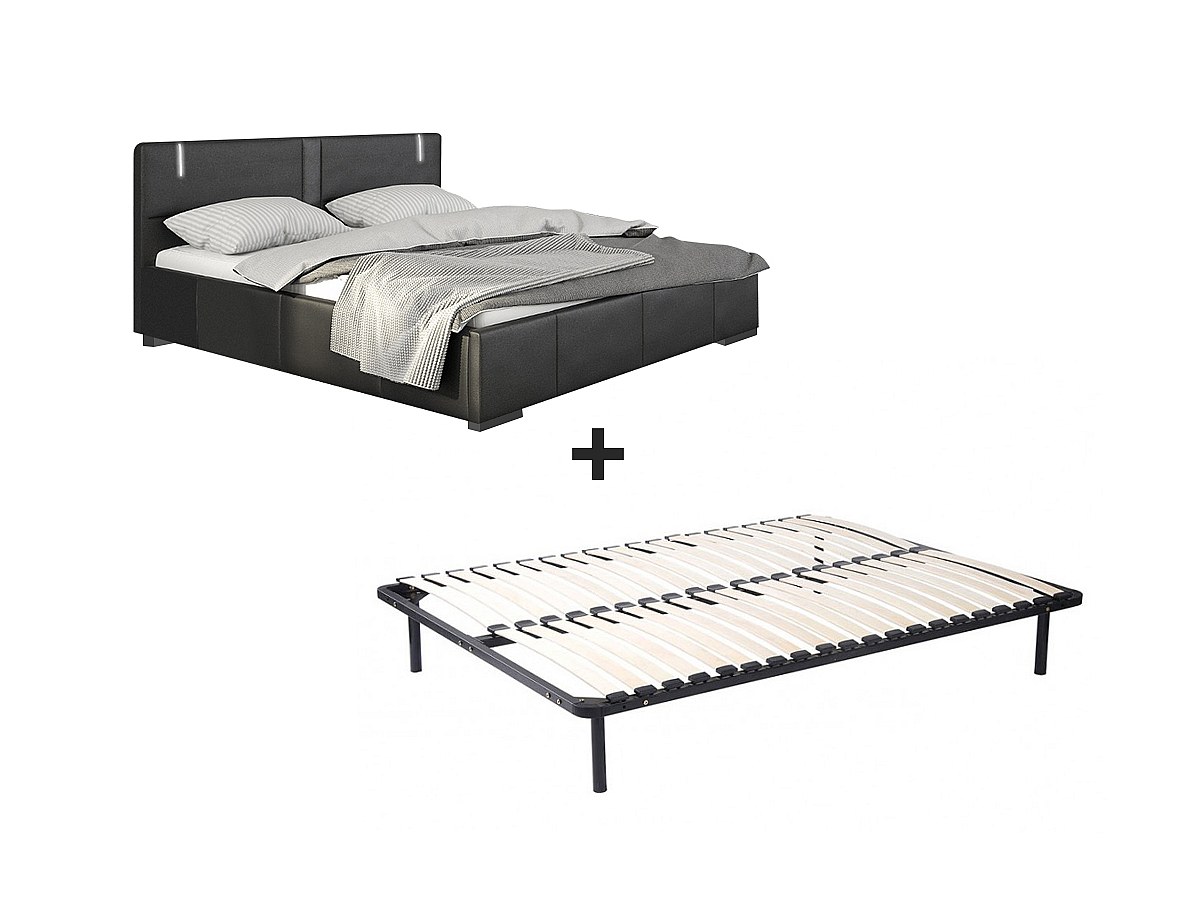LED-Bett SOREN + Lattenrahmen - 160x200 cm - Schwarz