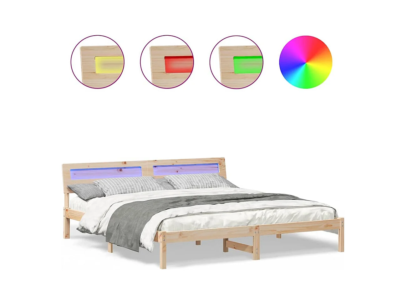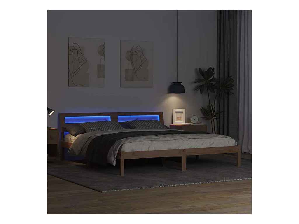 LED Bettgestell 180x200 cm Super King Massivholz