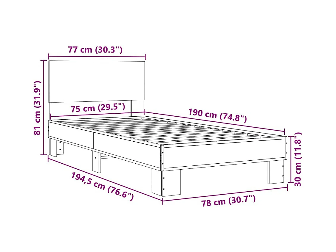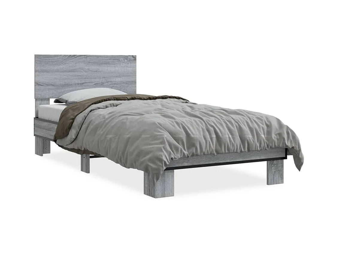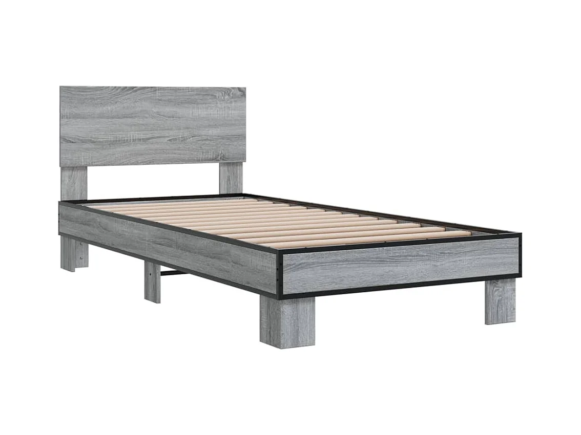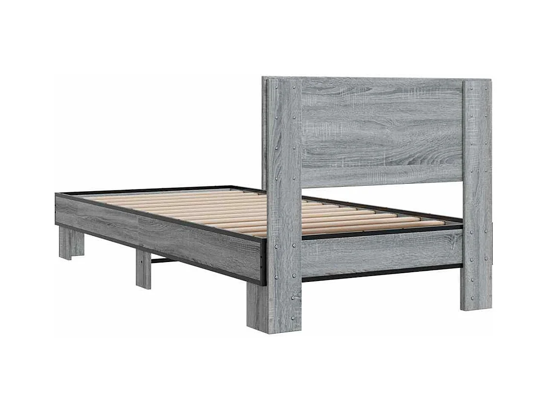 Bettgestell Grau Sonoma 75x190 cm Holzwerkstoff und Metall