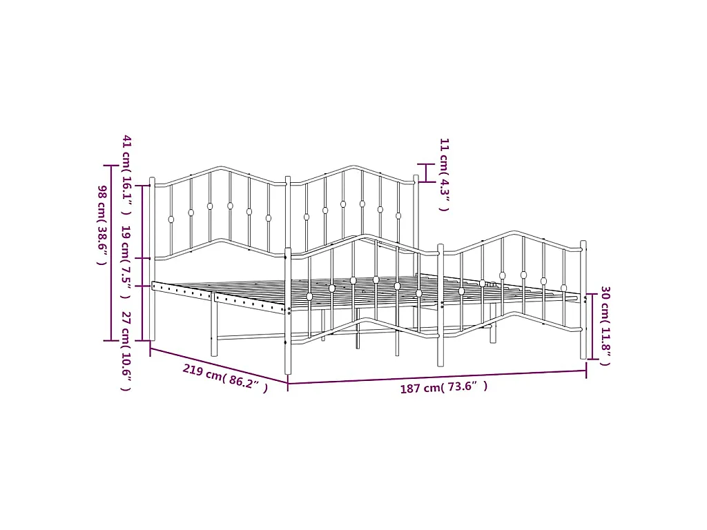 Bettgestell mit Kopf- und Fußteil Metall Schwarz 183x213 cm