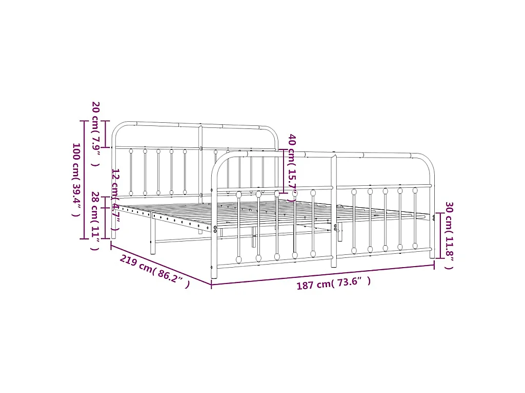 Bettgestell mit Kopf- und Fußteil Metall Schwarz 183x213 cm