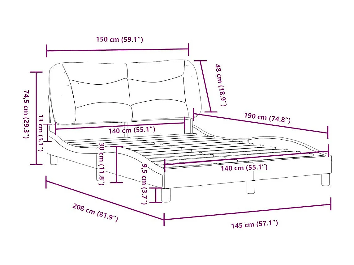Bettgestell ohne Matratze "Hvar" Weiß 140x190 cm Kunstleder