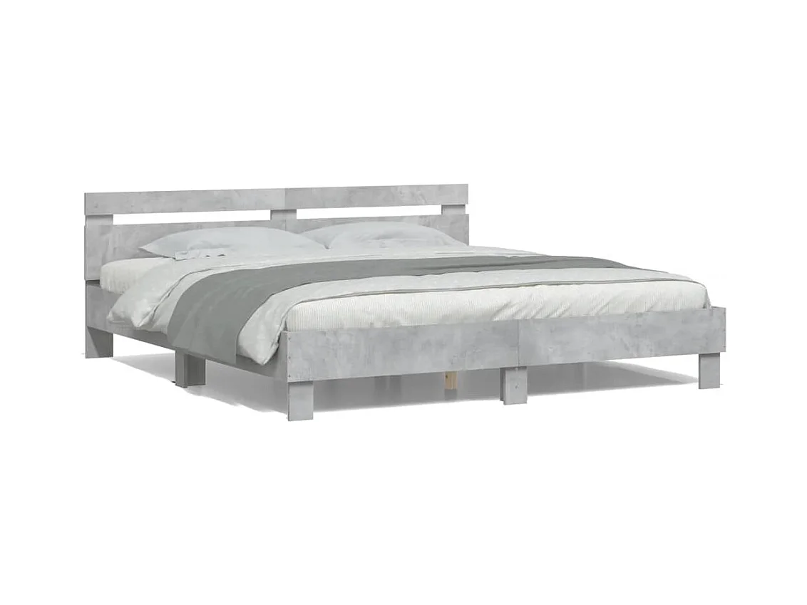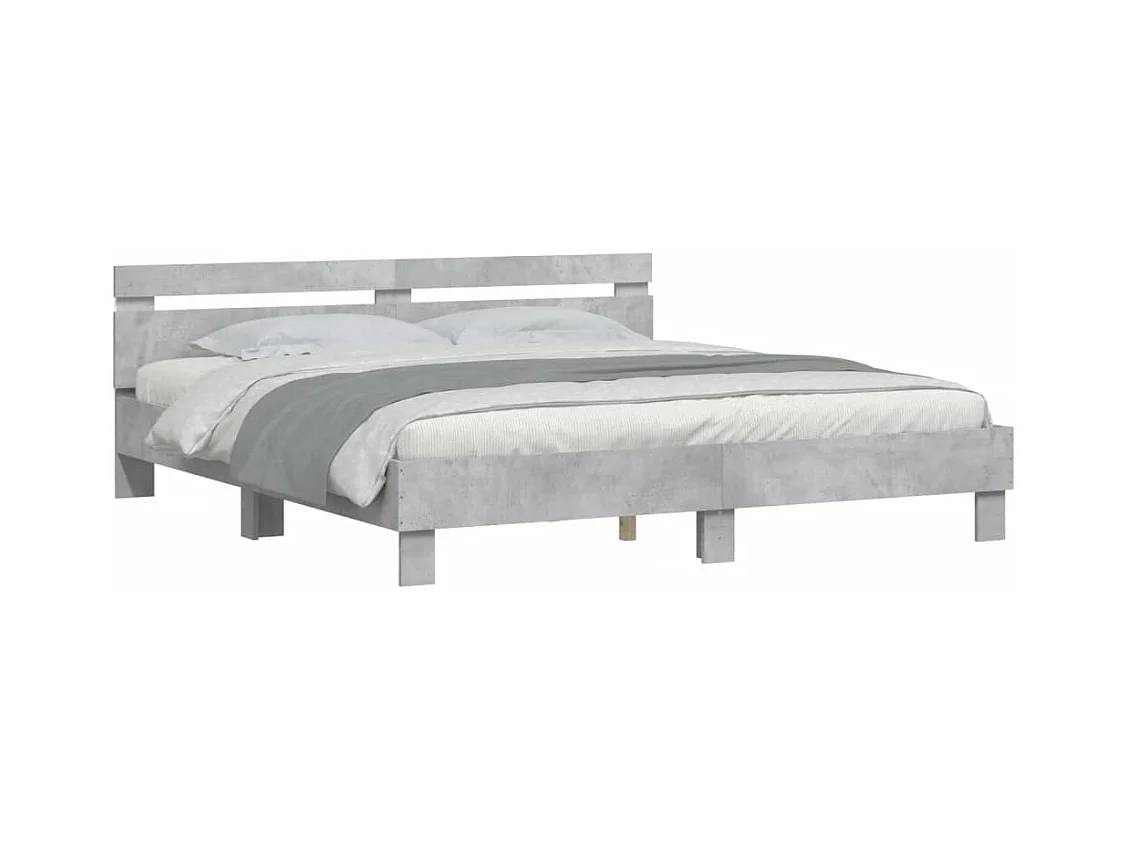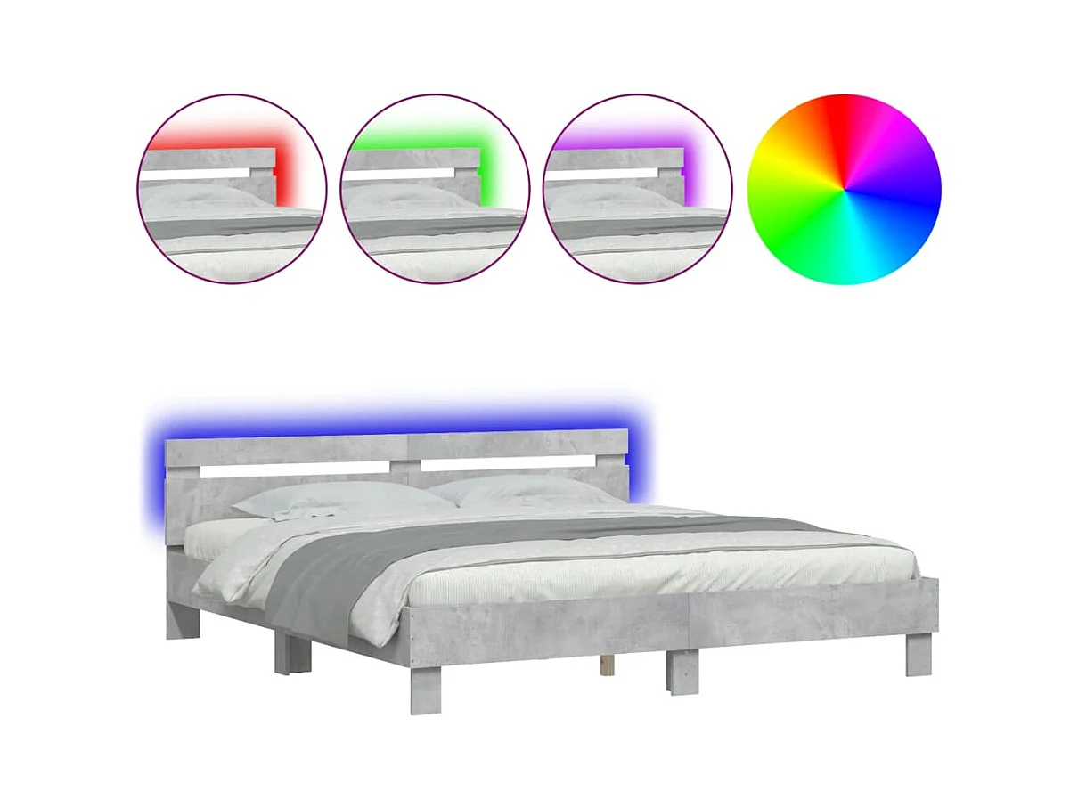 Bettgestell mit LED ohne Matratze Betongrau 160x200 cm