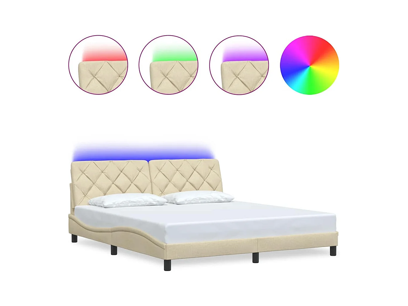 Bettgestell mit LED ohne Matratze creme 180x200 cm Stoff