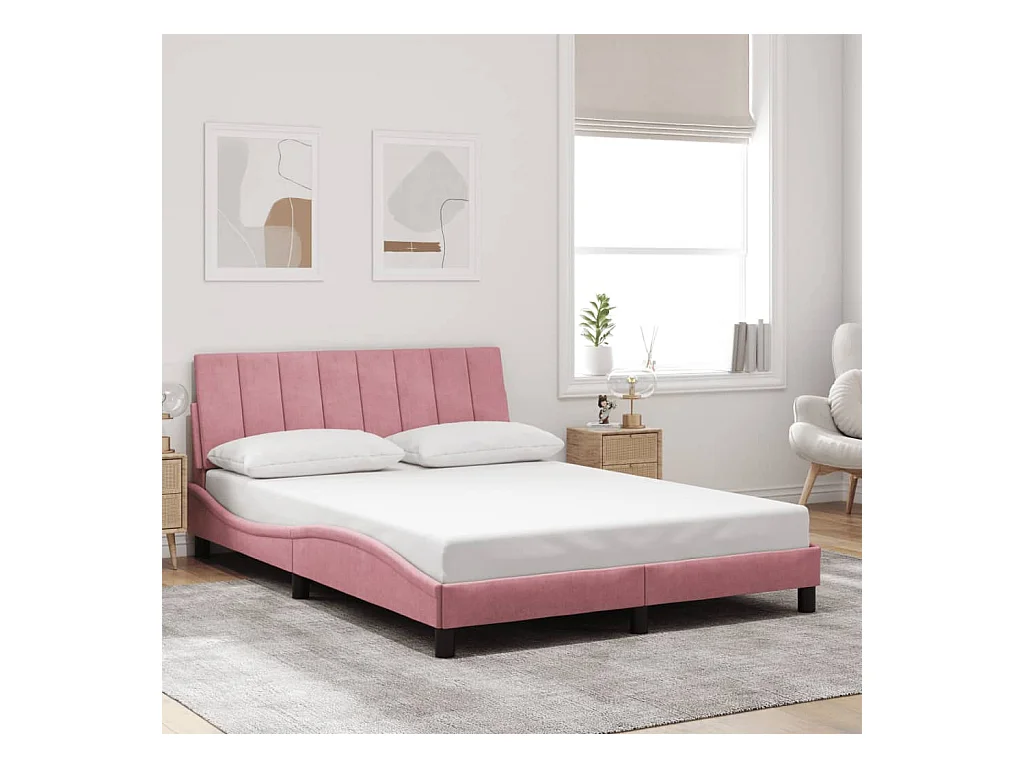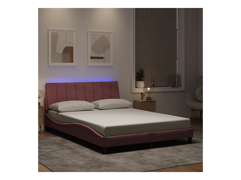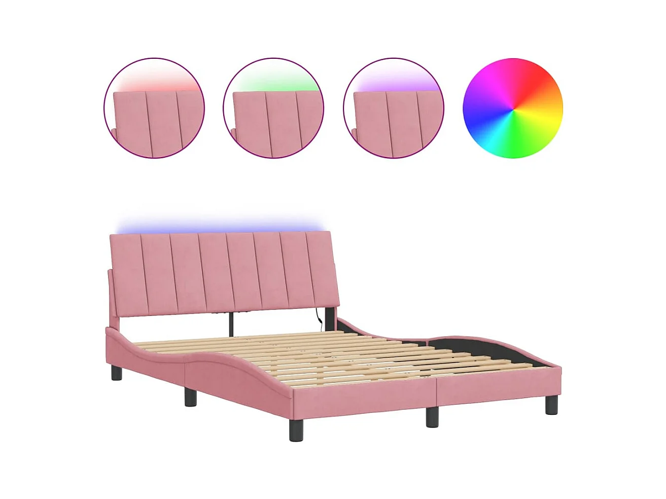 Bettgestell mit LED ohne Matratze "Hanko" Rosa 120x200 cm Samt