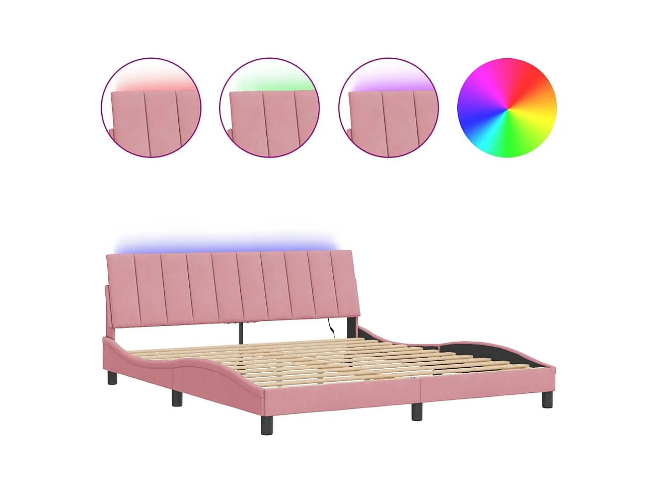 Bettgestell mit LED ohne Matratze rosa 180x200 cm Samt
