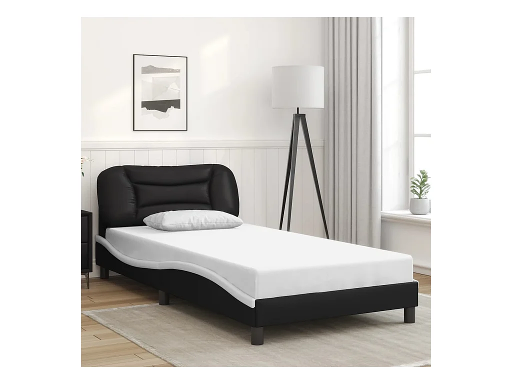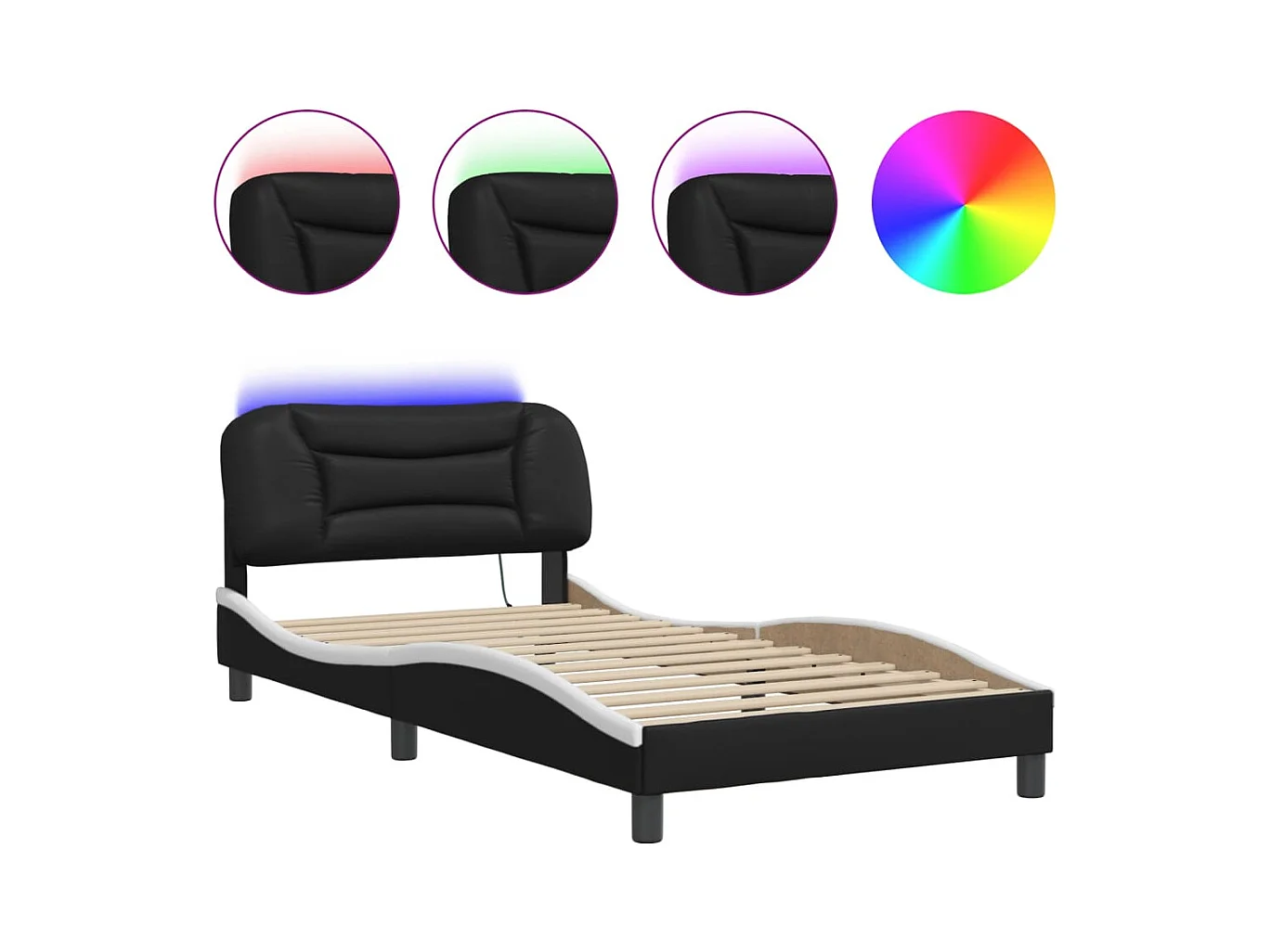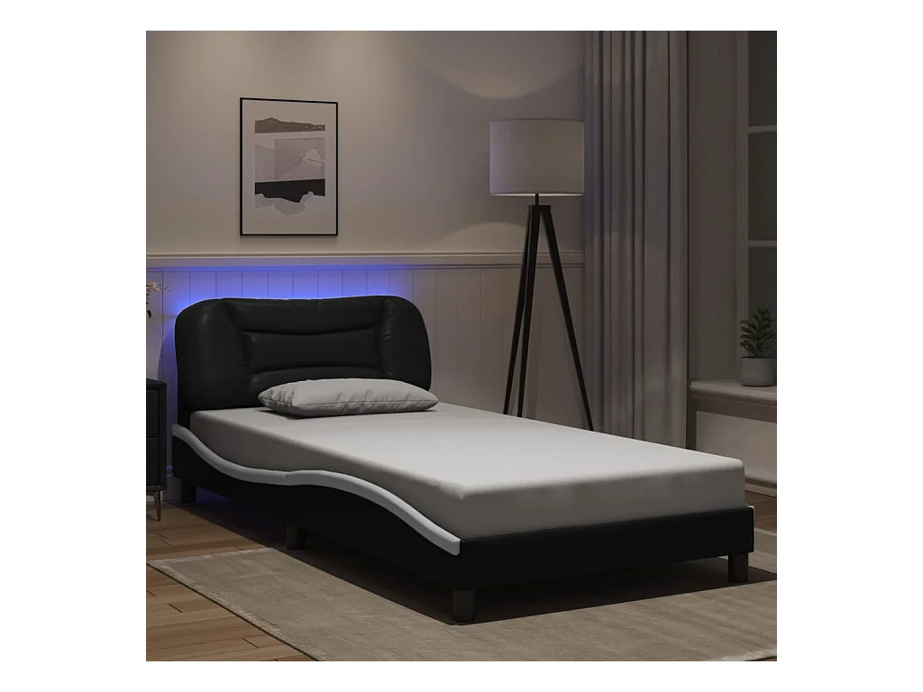 Bettgestell mit LED ohne Matratze schwarz-weiß 100x200 cm