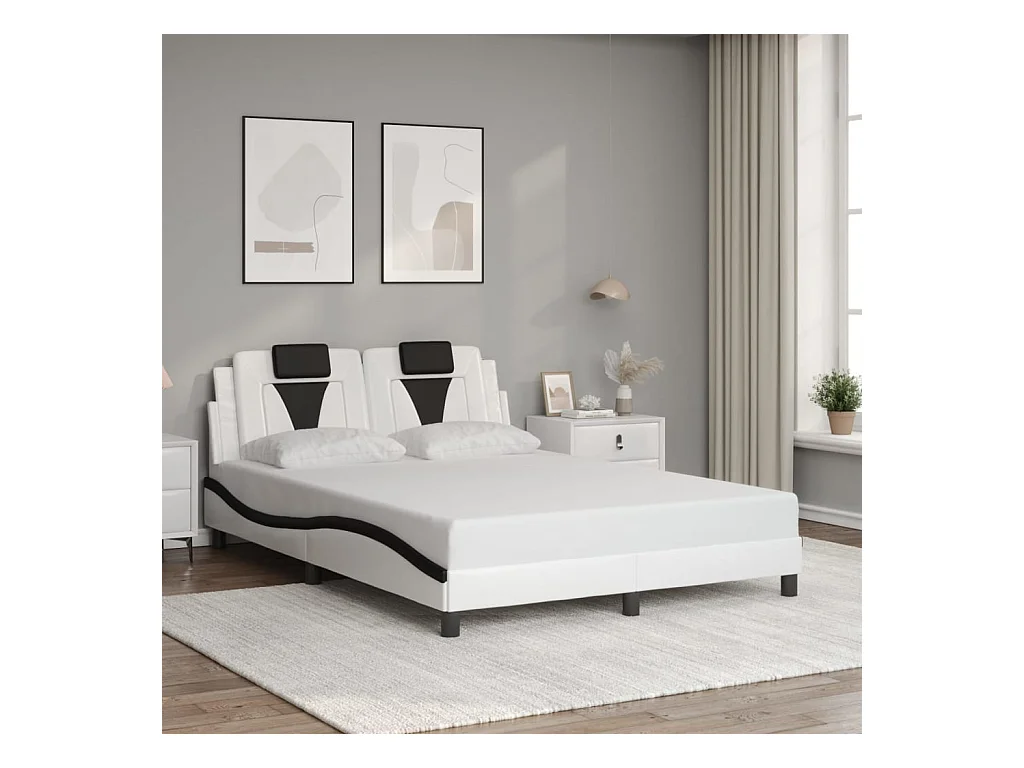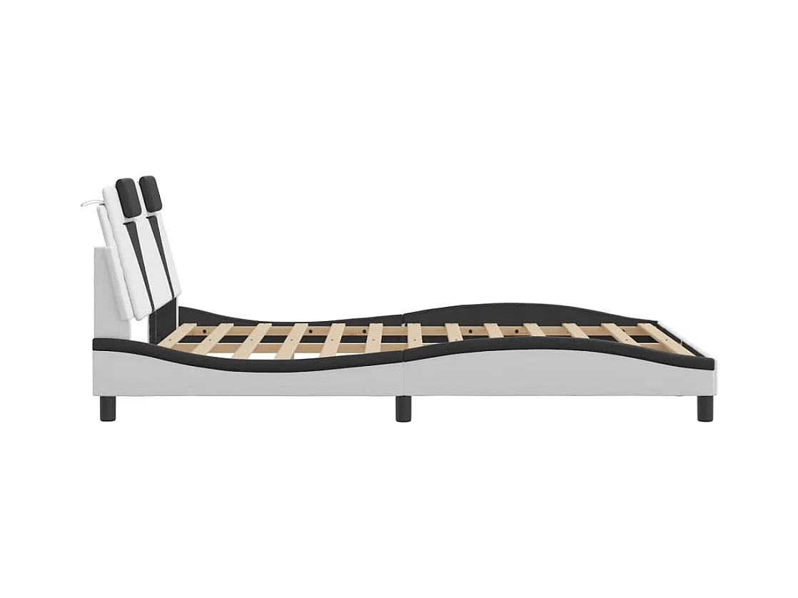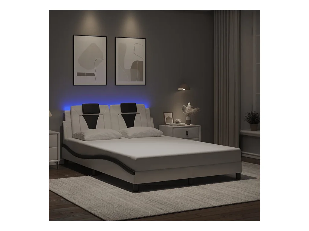 Bettgestell mit LED ohne Matratze weiß und schwarz 140x200 cm