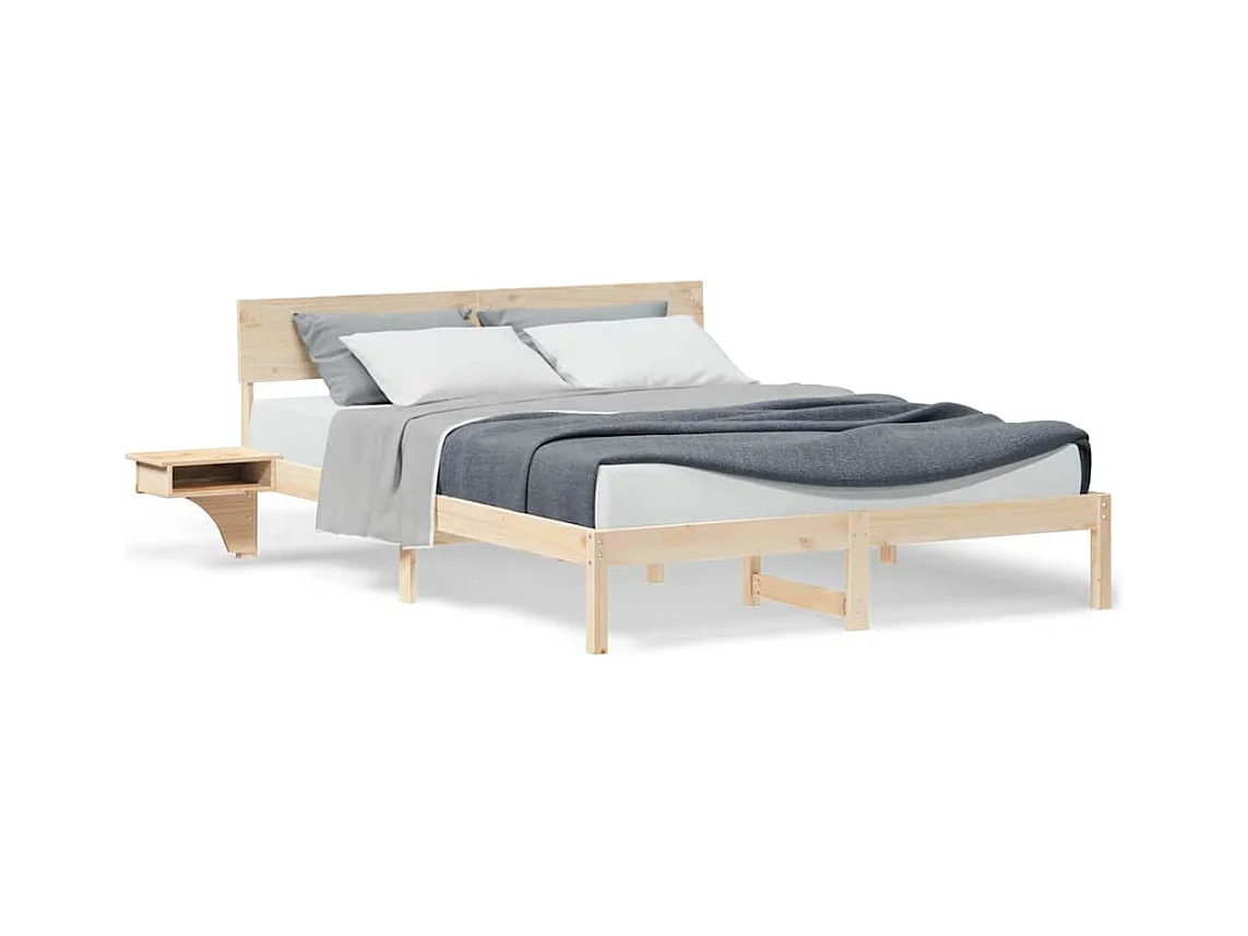 Bettgestell mit Nachttischen Braun Massivholz Kiefer