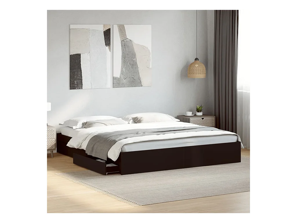 Bettgestell mit Schubladen ohne Matratze schwarz 200x200 cm