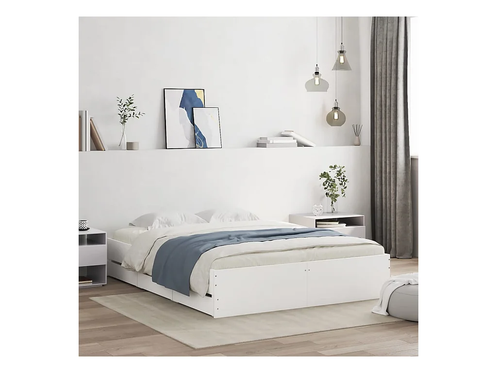 Bettgestell mit Schubladen ohne Matratze weiß 140x190 cm