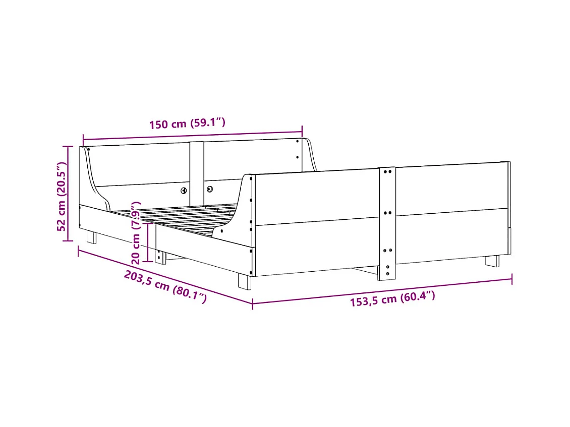 Bettgestell ohne Matratze 150x200 cm Kiefer Massivholz