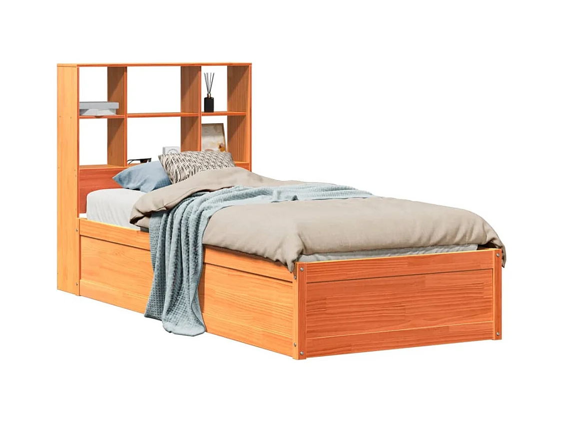 Bettgestell ohne Matratze, braun gewachst, 100x200cm, Kiefer massiv