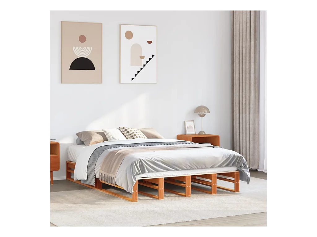 Bettgestell 140 x 190 cm, Kiefer massiv, gewachst, braun