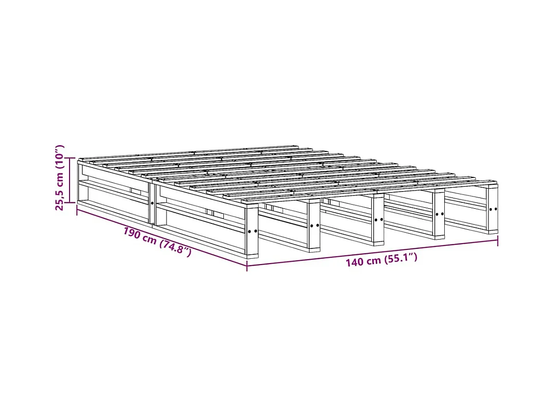 Palettenbett 140x190 cm Kiefer Massivholz