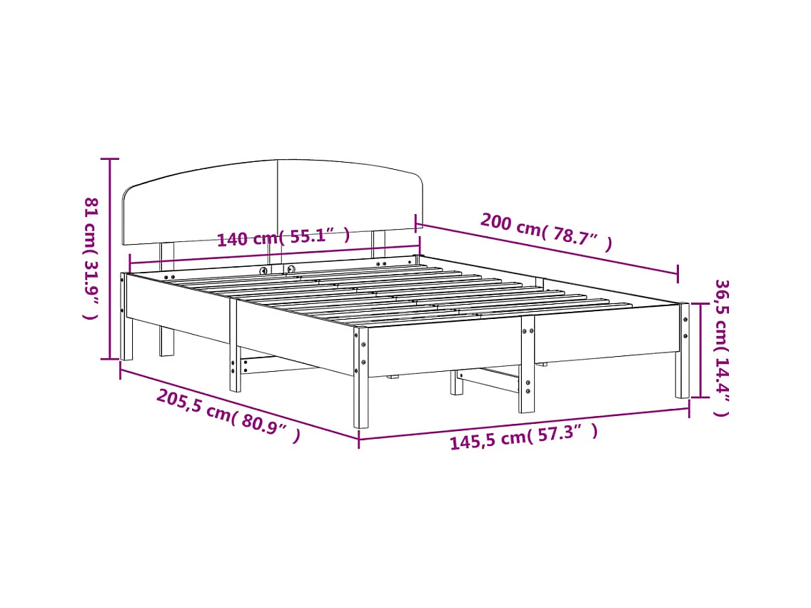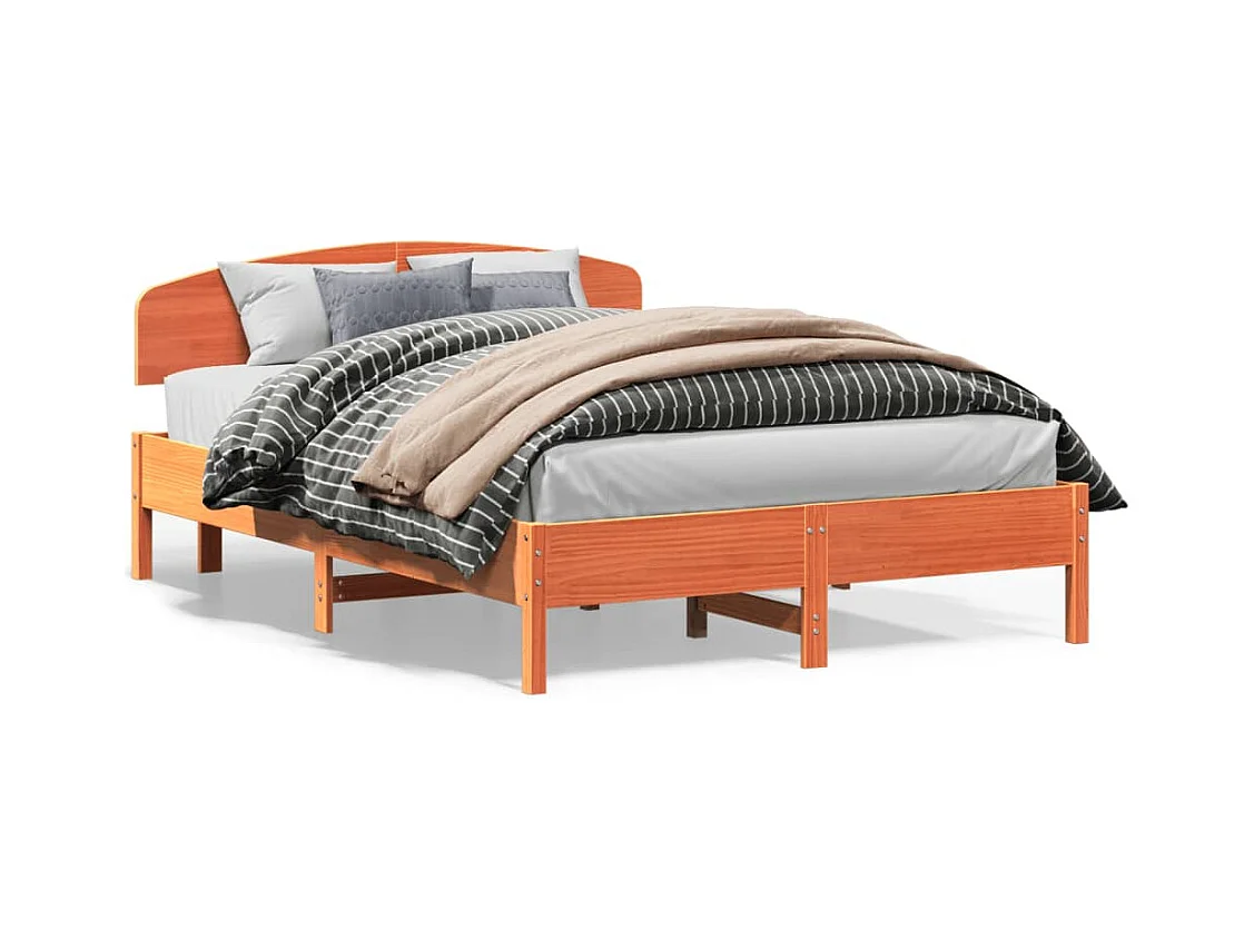Bettgestell ohne Matratze, braun gewachst, 140x200cm, Kiefer massiv