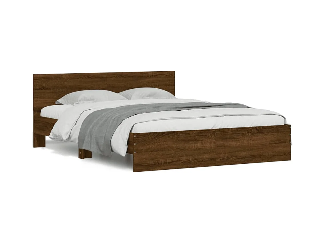 Bettgestell mit LED ohne Matratze Eiche braun 150x200 cm