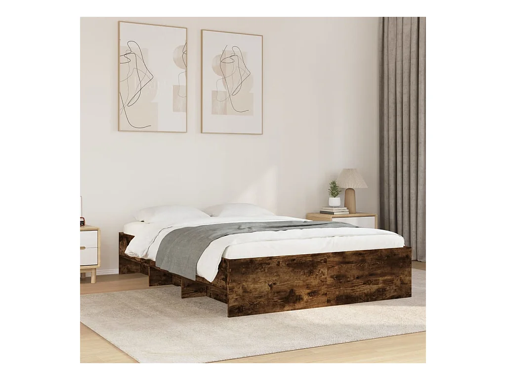 Bettgestell ohne Matratze Räuchereiche 140x190 cm Holzwerkstoff