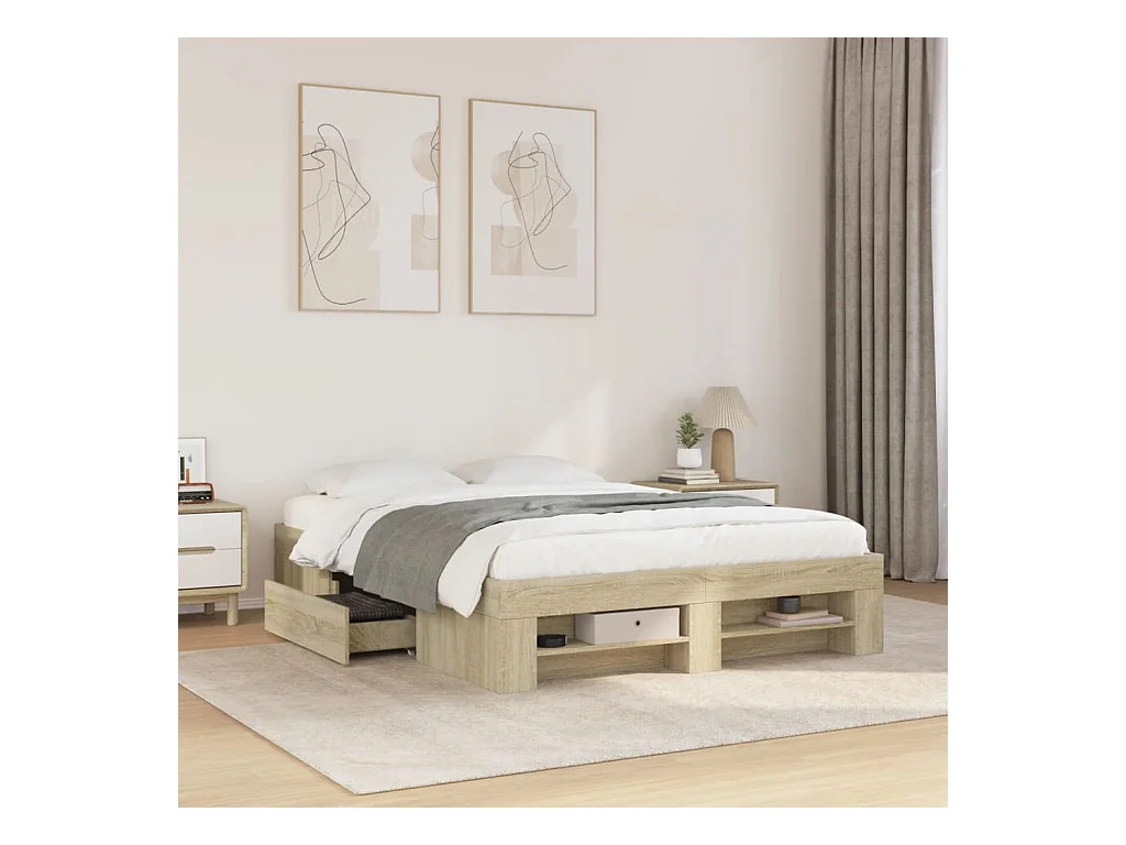 Bettgestell mit Schubladen ohne Matratze Räuchereiche 120x200 cm
