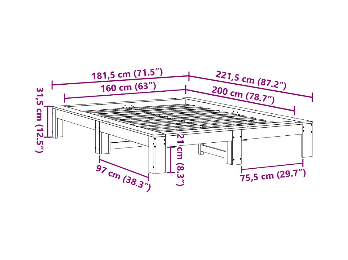 Bettgestell ohne Matratze weiß 160x200 cm Kiefer Massivholz