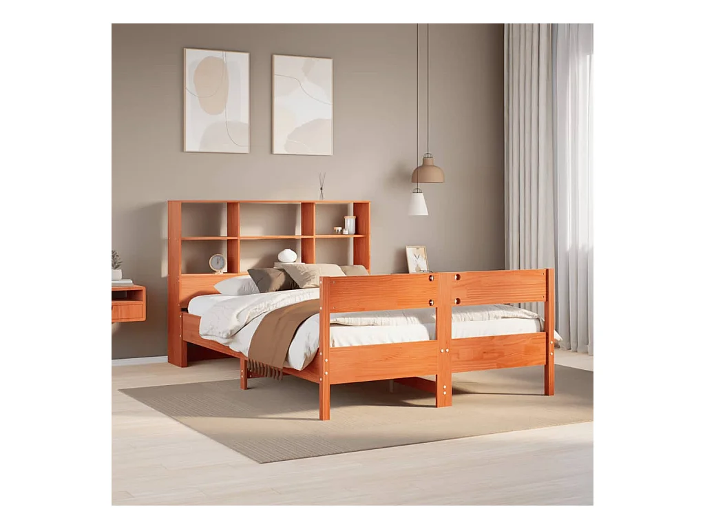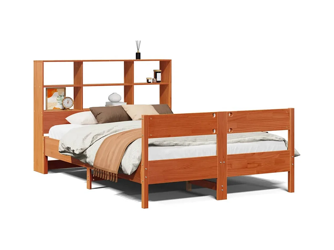 Bibliotheksbett ohne Matratze braun gewachst 140x190 cm Kiefer massiv