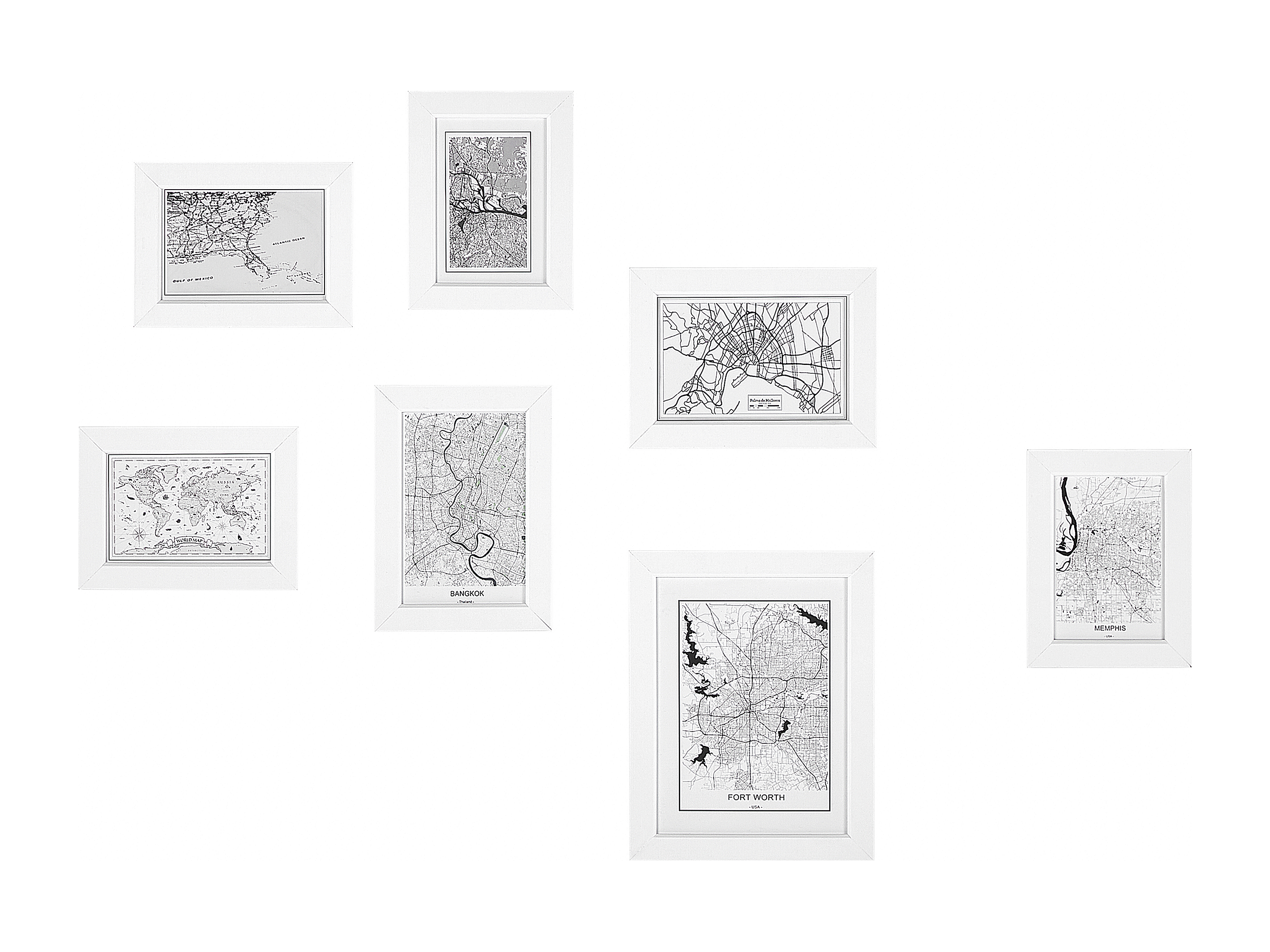 Fotos 7er Set mit MDF Rahmen weiß Acrylglas Landkartenmotiv Collage Denkoro