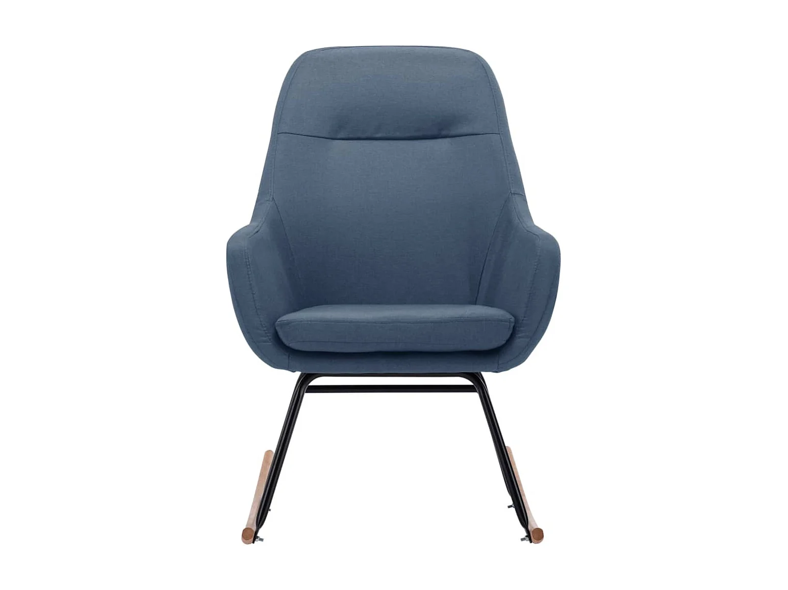 Schaukelstuhl mit Beinen aus massivem Gummibaumholz in blauem Samt