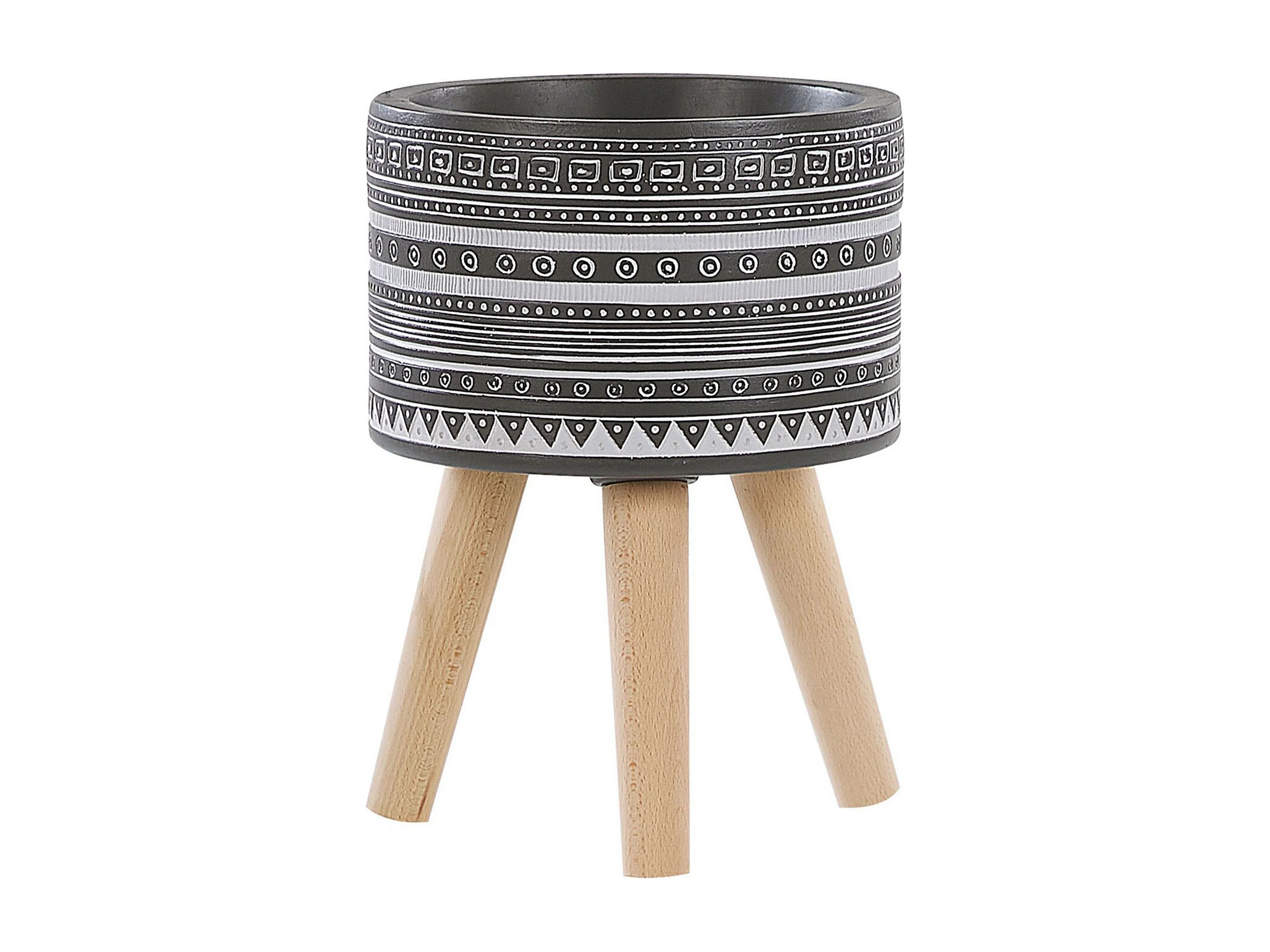 Runder Blumenbehälter in Grau aus Magnesium mit 3 Holzbeinen ⌀ 21 cm Arginia