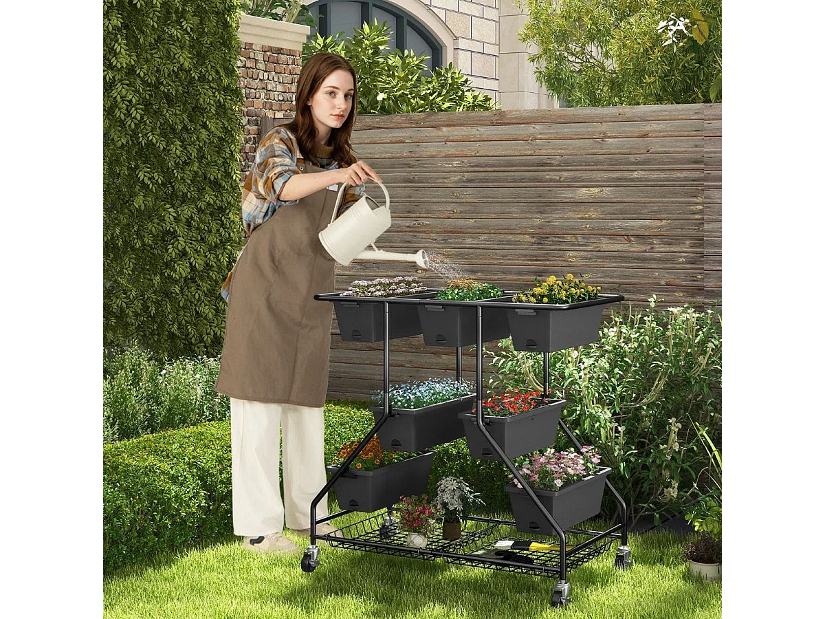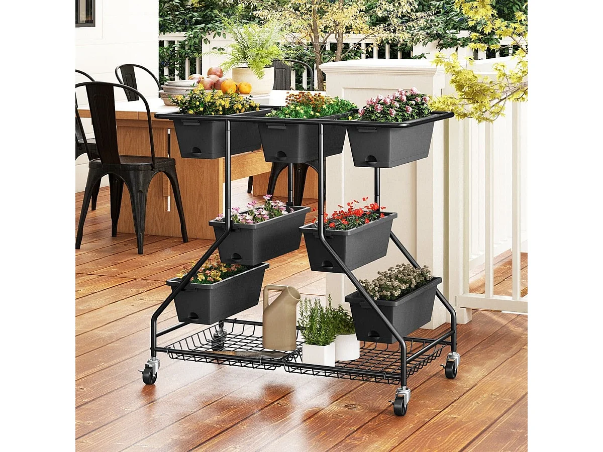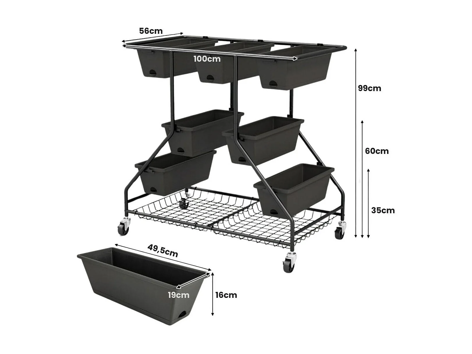 Blumenständer mit Blumenkästen Blumentreppe mit Rollen 100 x 56 x 99 cm Schwarz