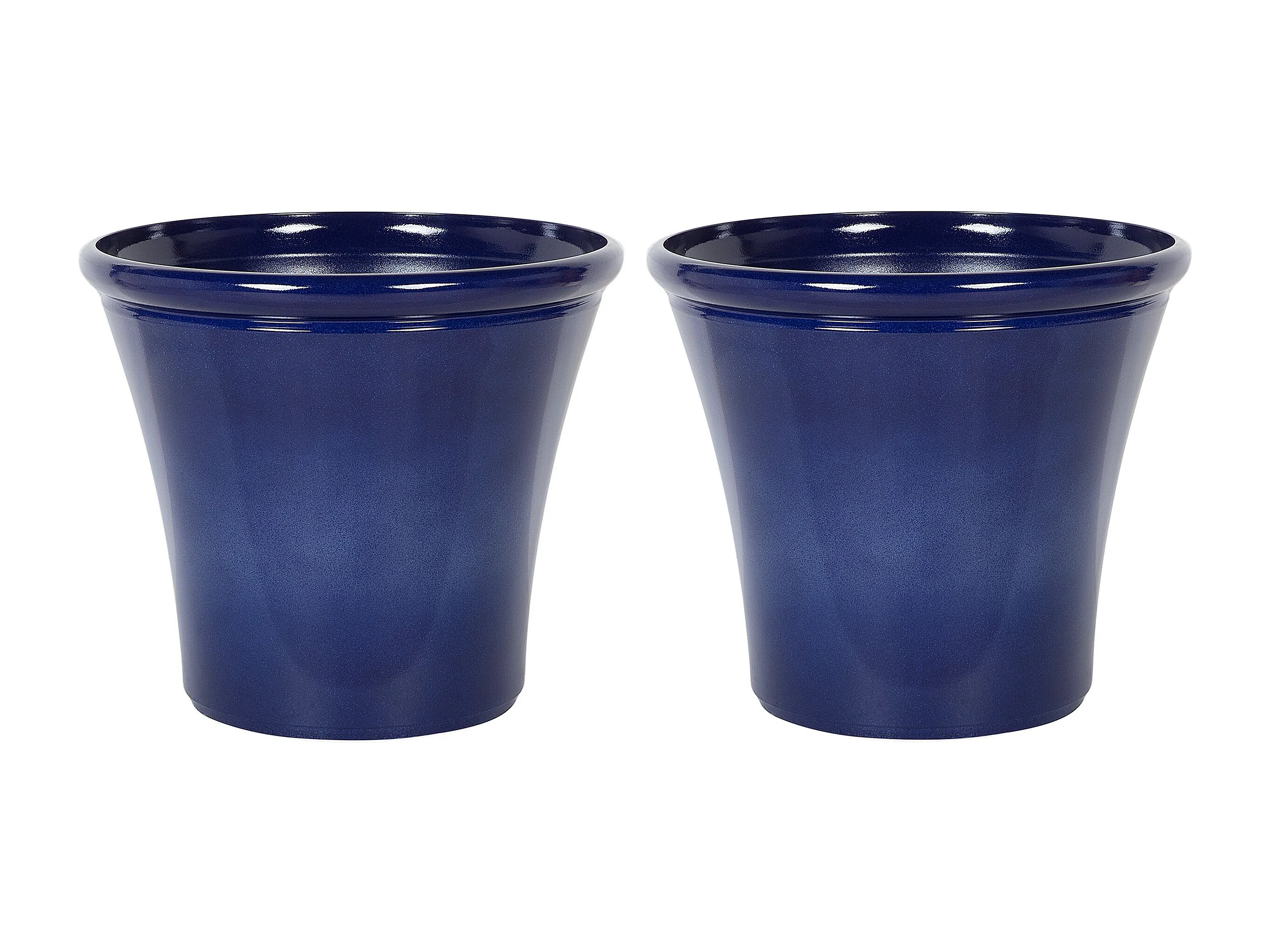 Blumentopf Lehm / Glasfaser blau 2er Set rund ⌀ 50 cm Outdoor Modern Kokkino