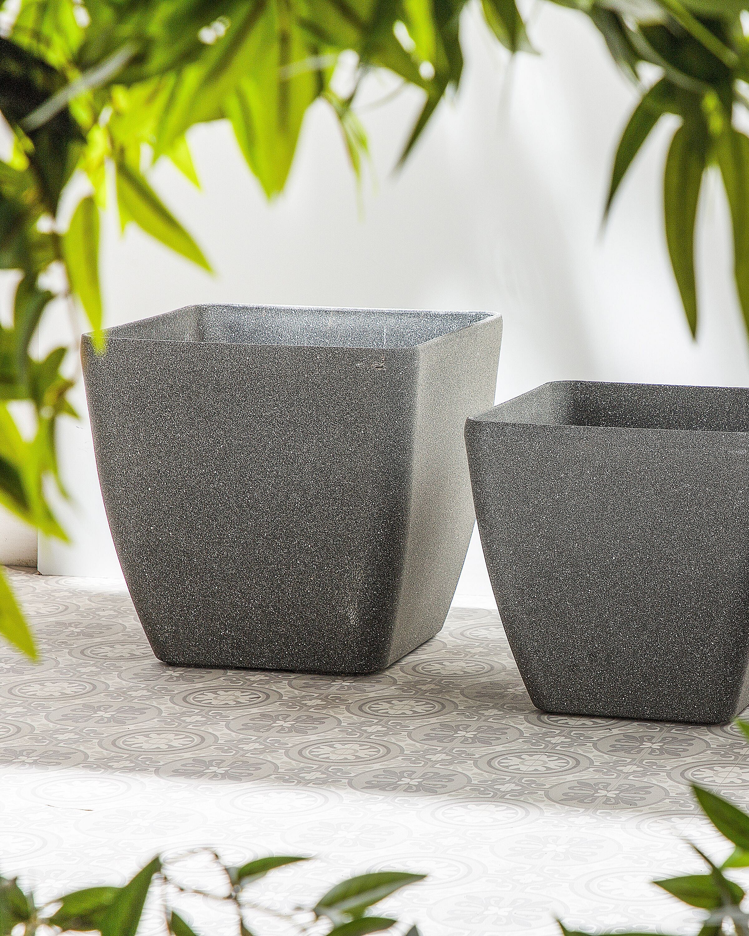 Blumentopf dunkelgrau Stein 49x49x49 rechteckig Zeli