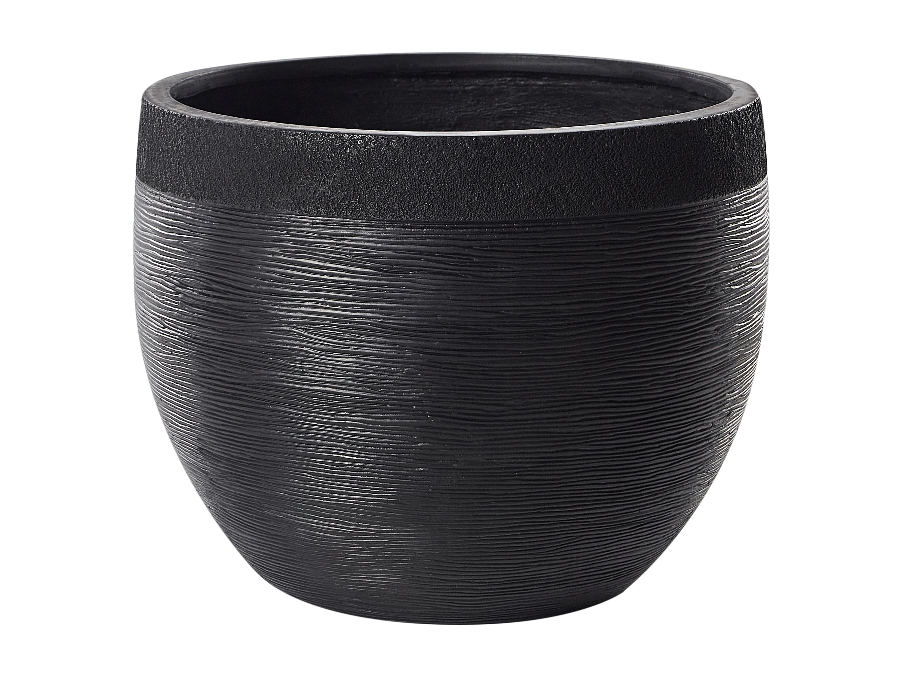 Blumentopf Glasfaser Beton-Optik schwarz rund 50 x 50 x 39 cm Modern Zakros