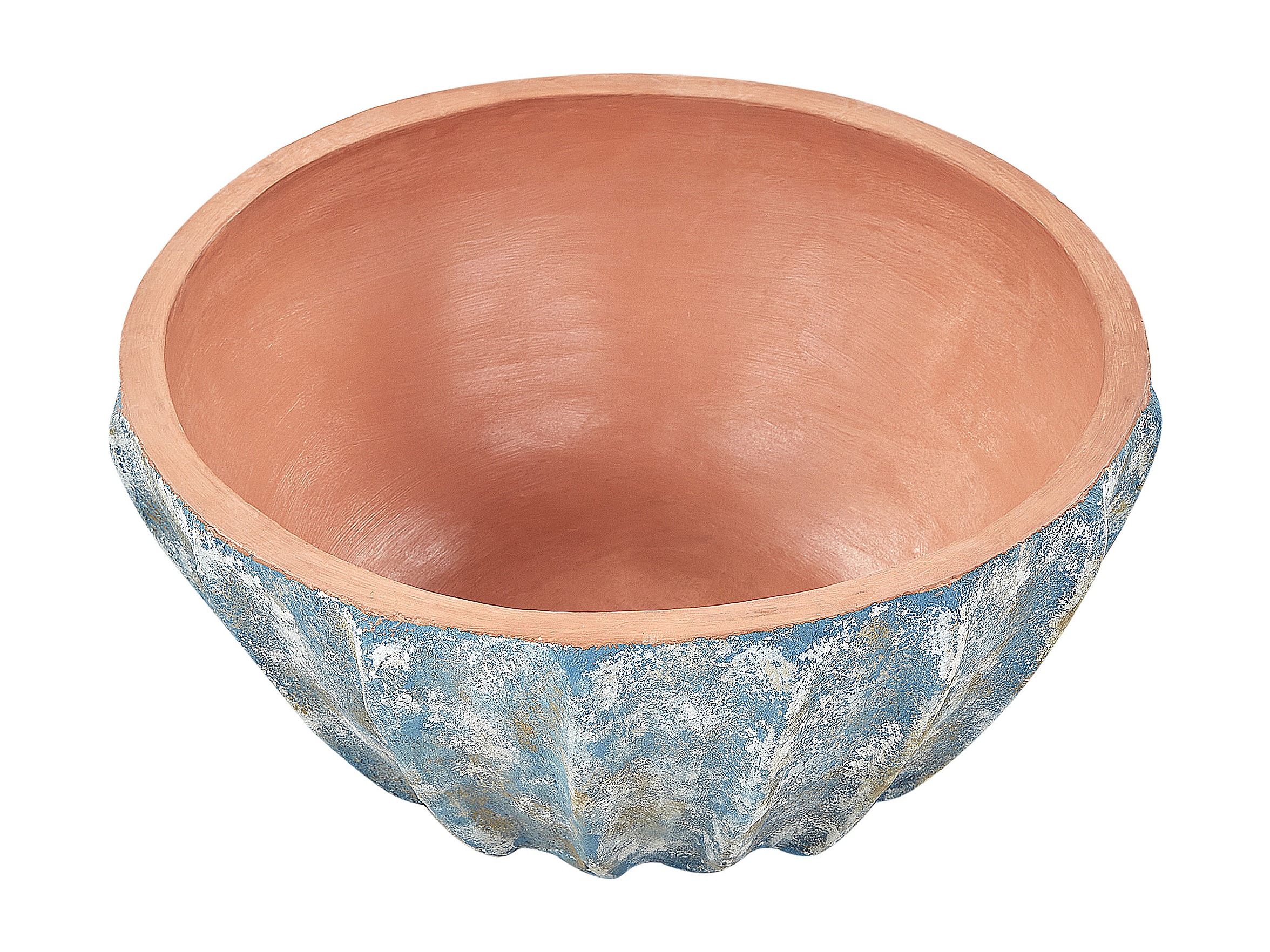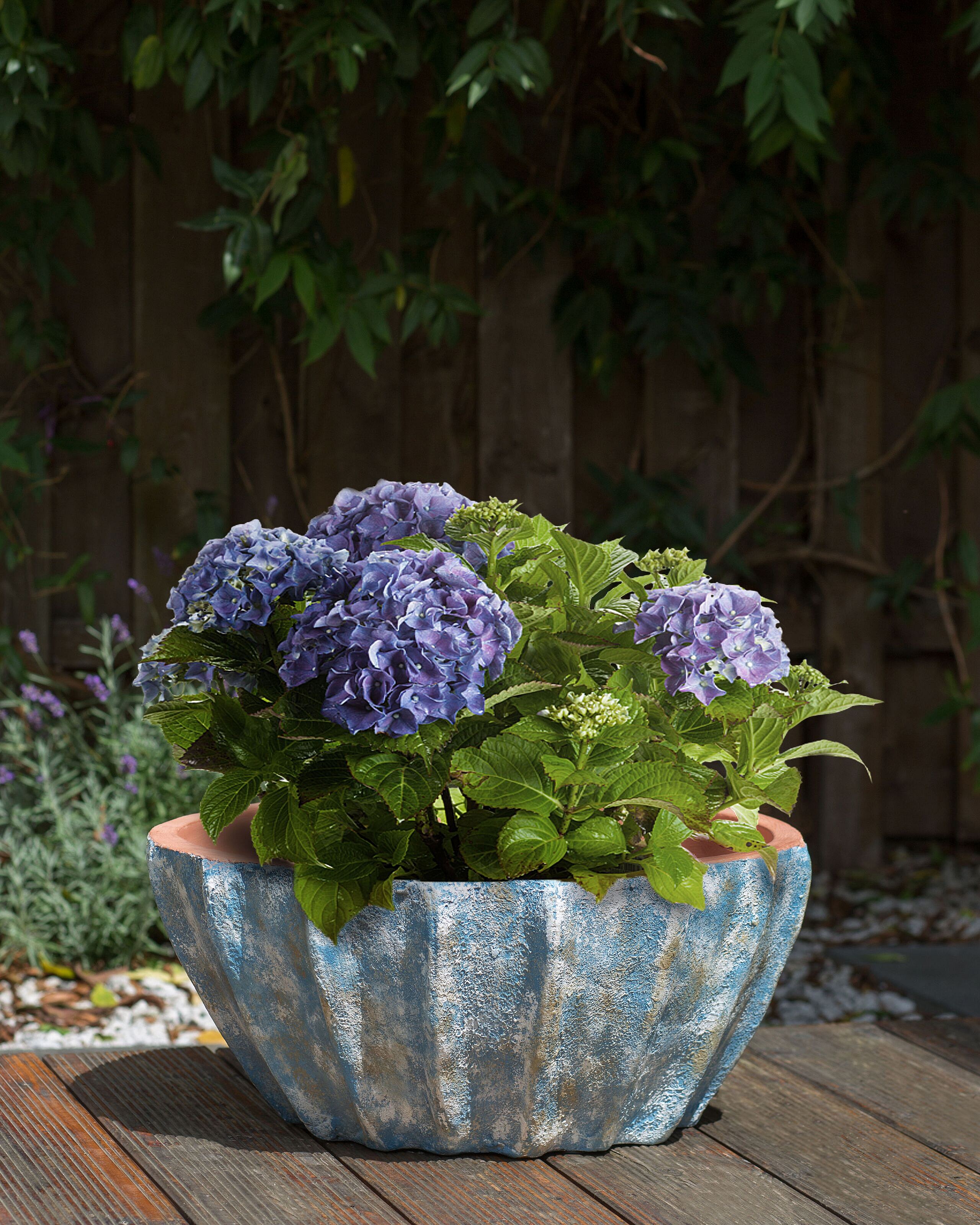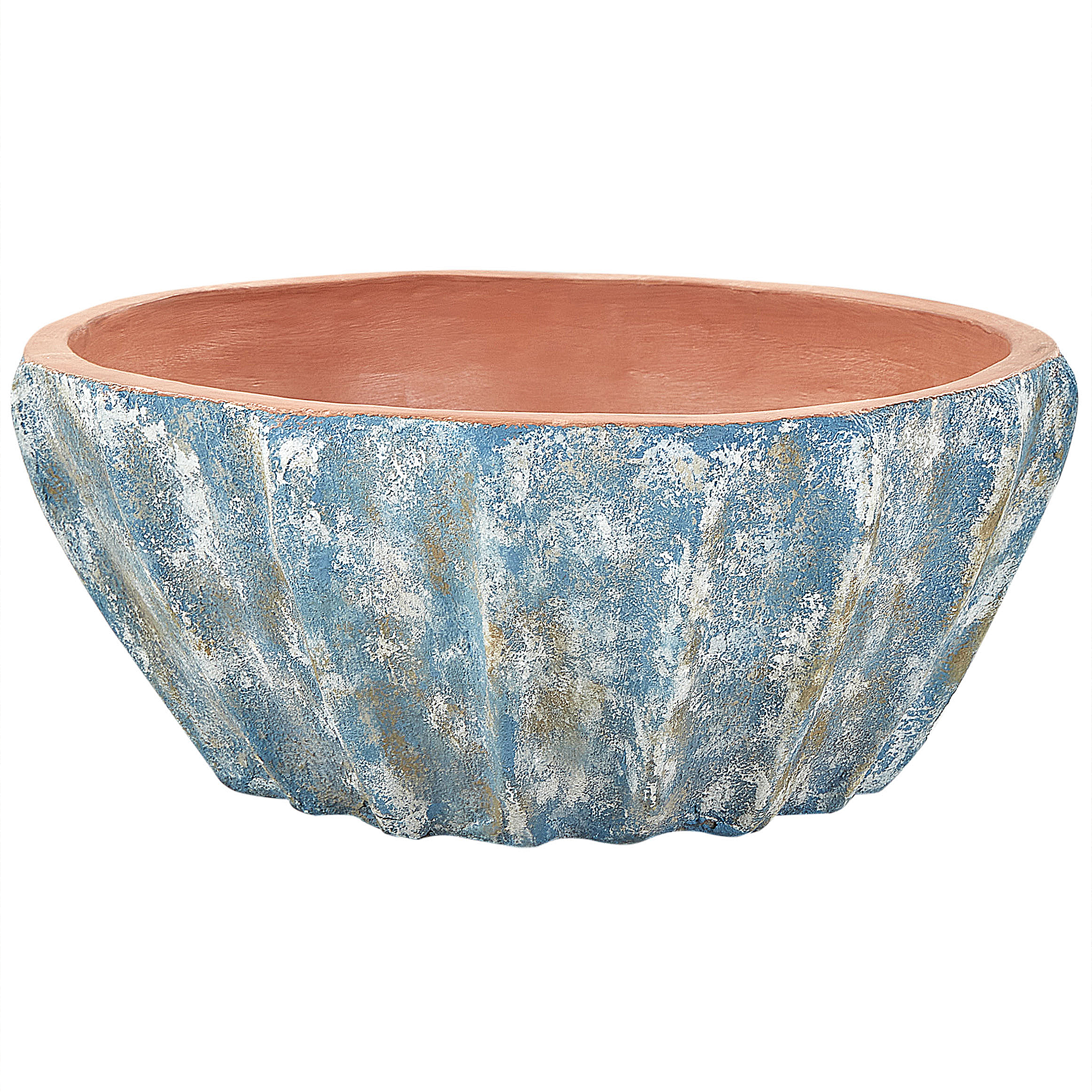 Blumentopf Terrakotta rund blau 51 x 51 cm mit Loch rustikal 24 cm hoch Ostrya