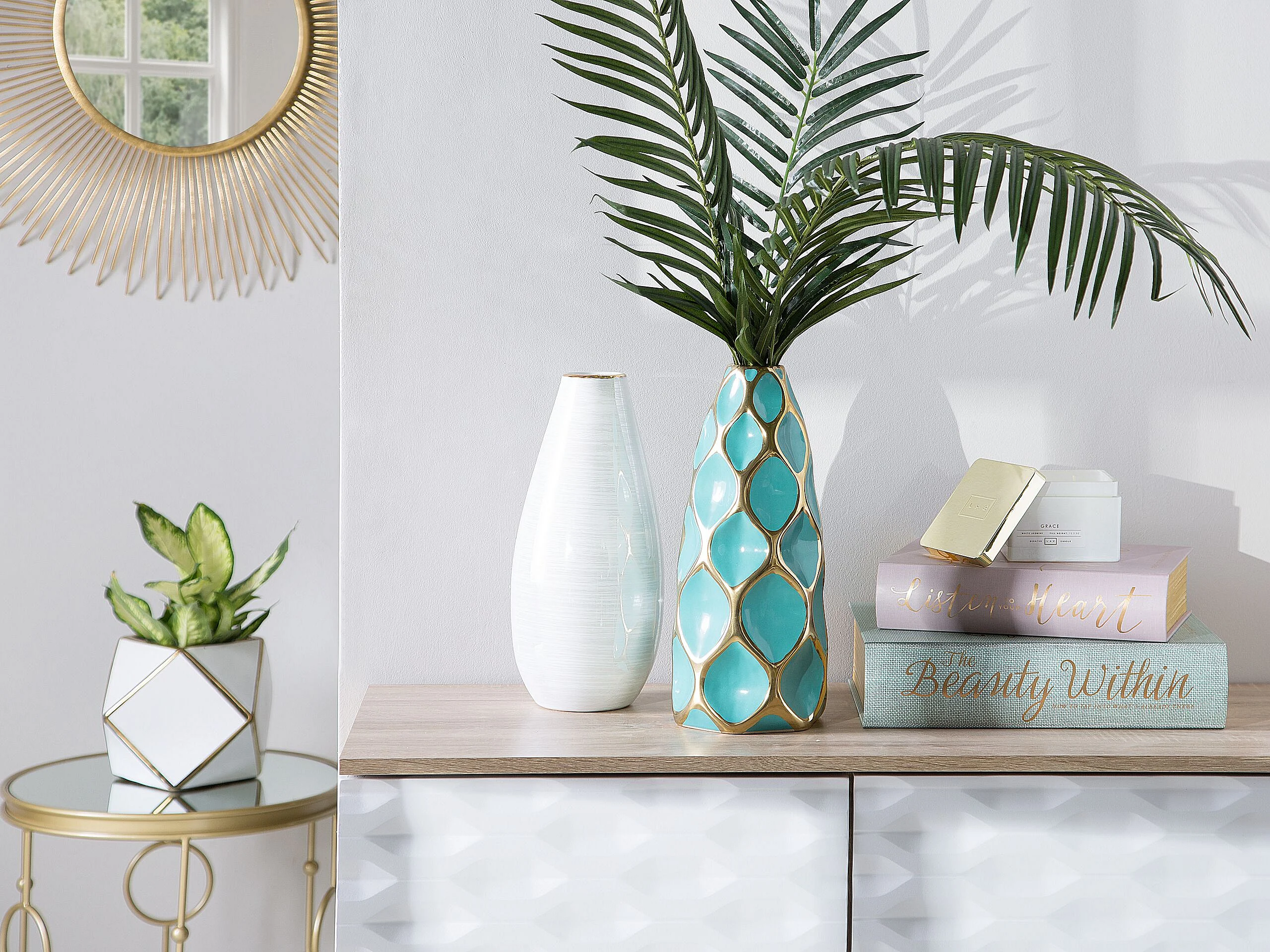 Blumenvase Keramik türkis / gold 36 cm AVILA