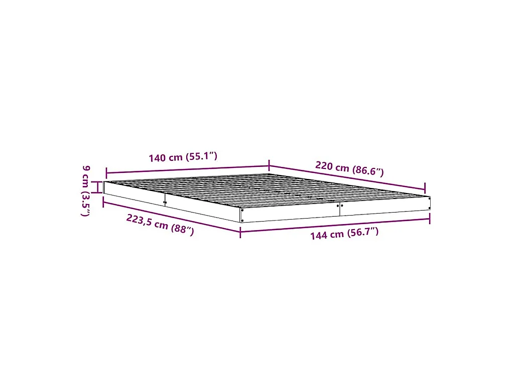 Bodenbettrahmen Weiß 140 x 220 cm Massives Kiefernholz
