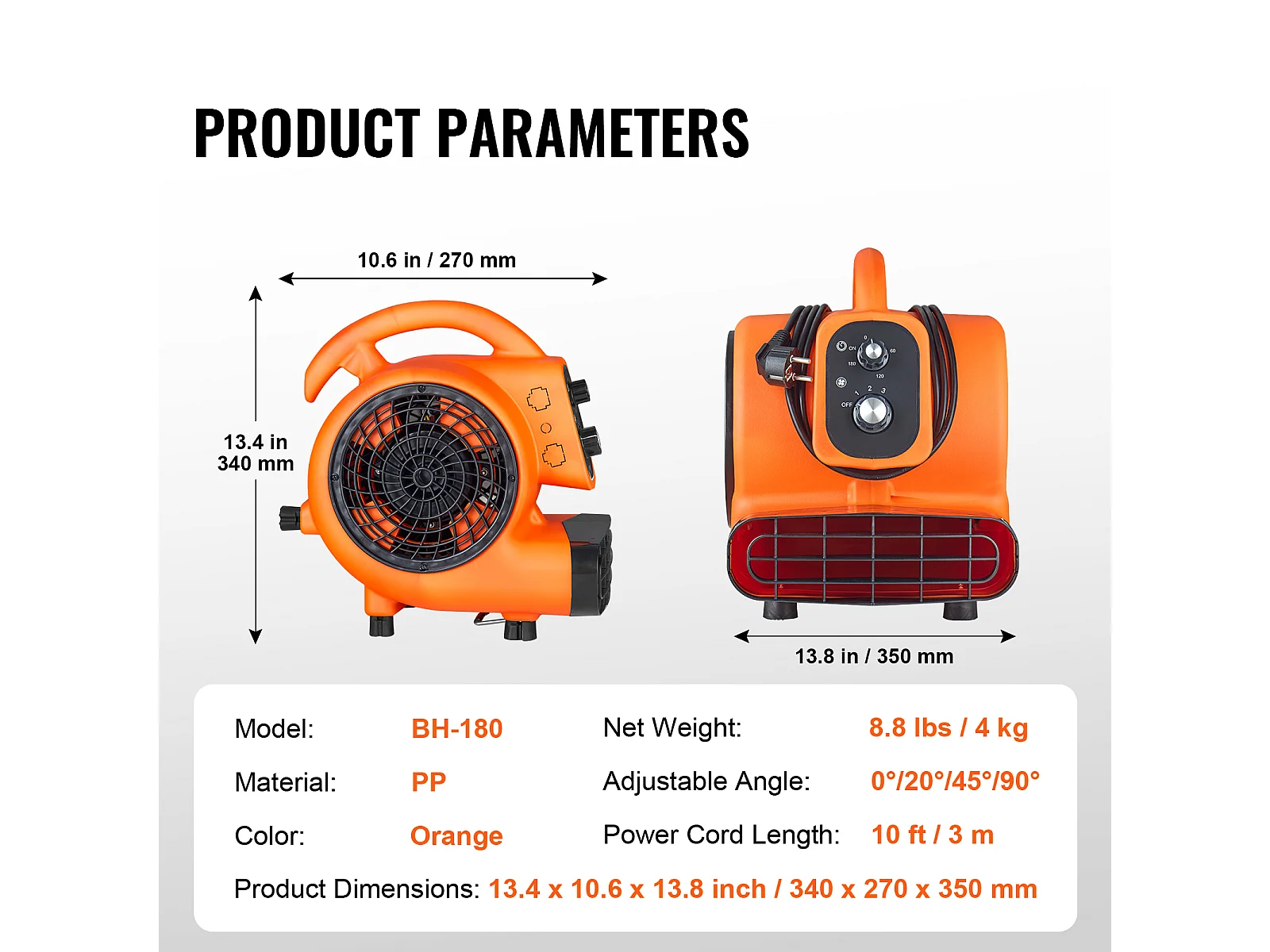 Bodenbläser SucceBuy, Luftmotor 1380 U/Min 1000 CFM, 4 Winkel, 3 Geschwindigkeitsstufen