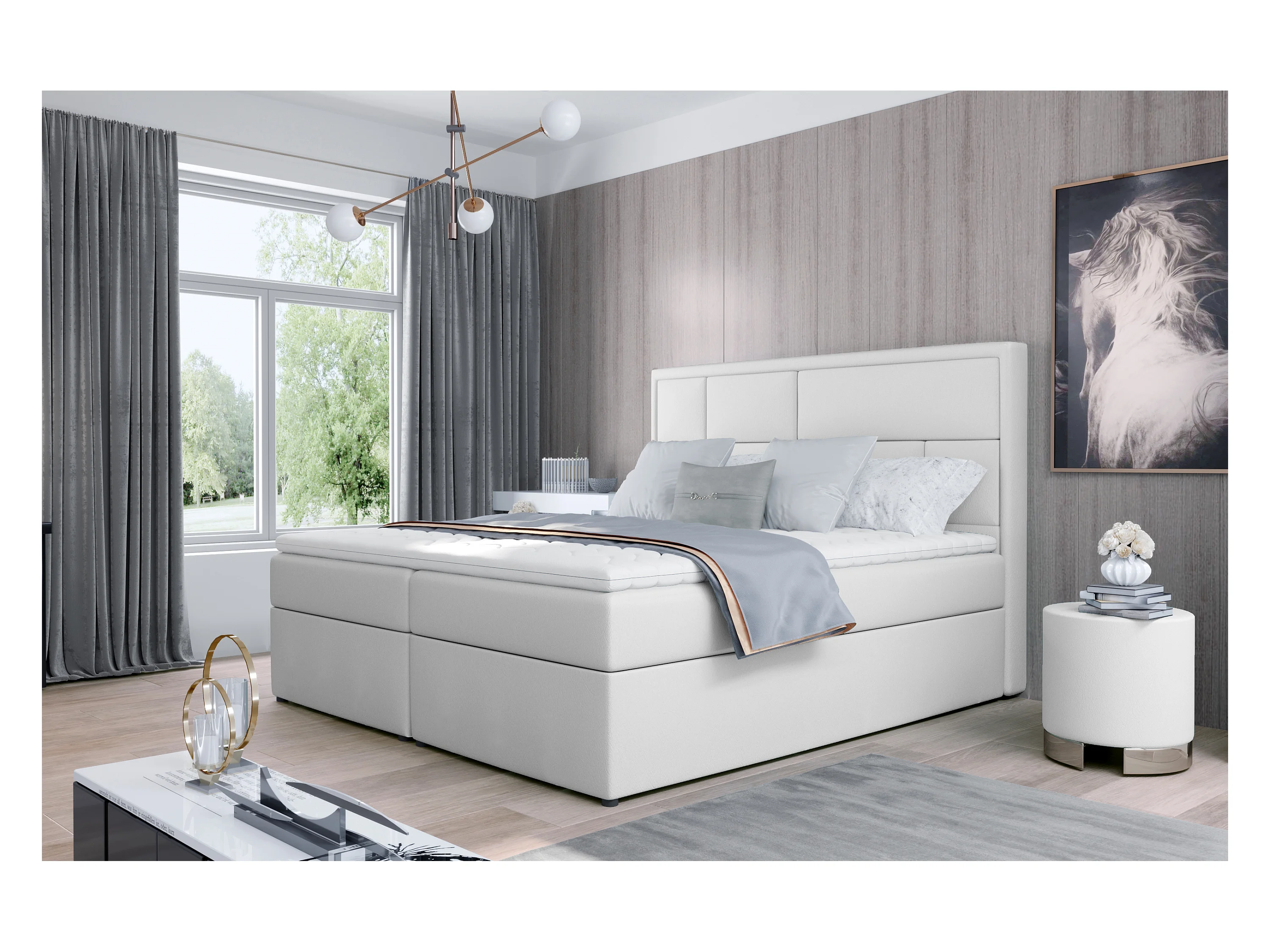 Boxspringbett Aaron L (180x200)/Stoff-Weiss