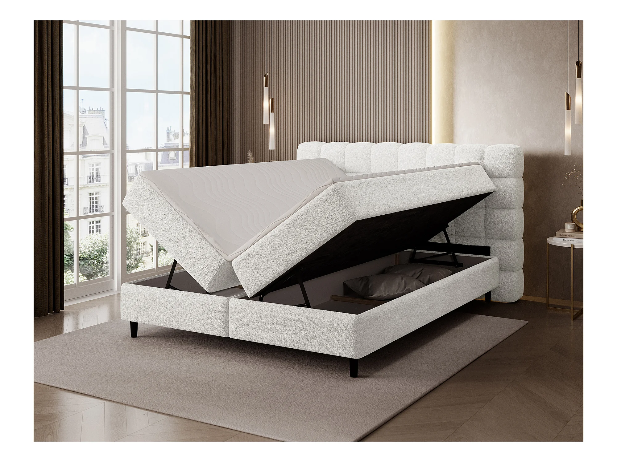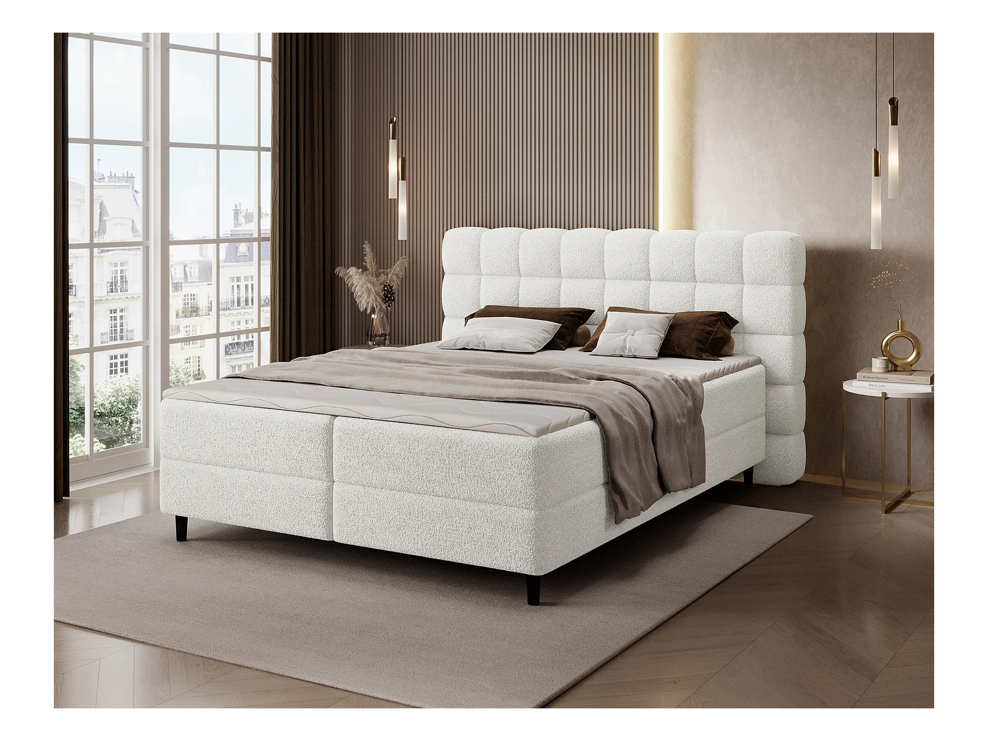 Boxspringbett Bernex/Bettbox/Matratzen&Topper/Stoffbezug-Bouclé/Weiss