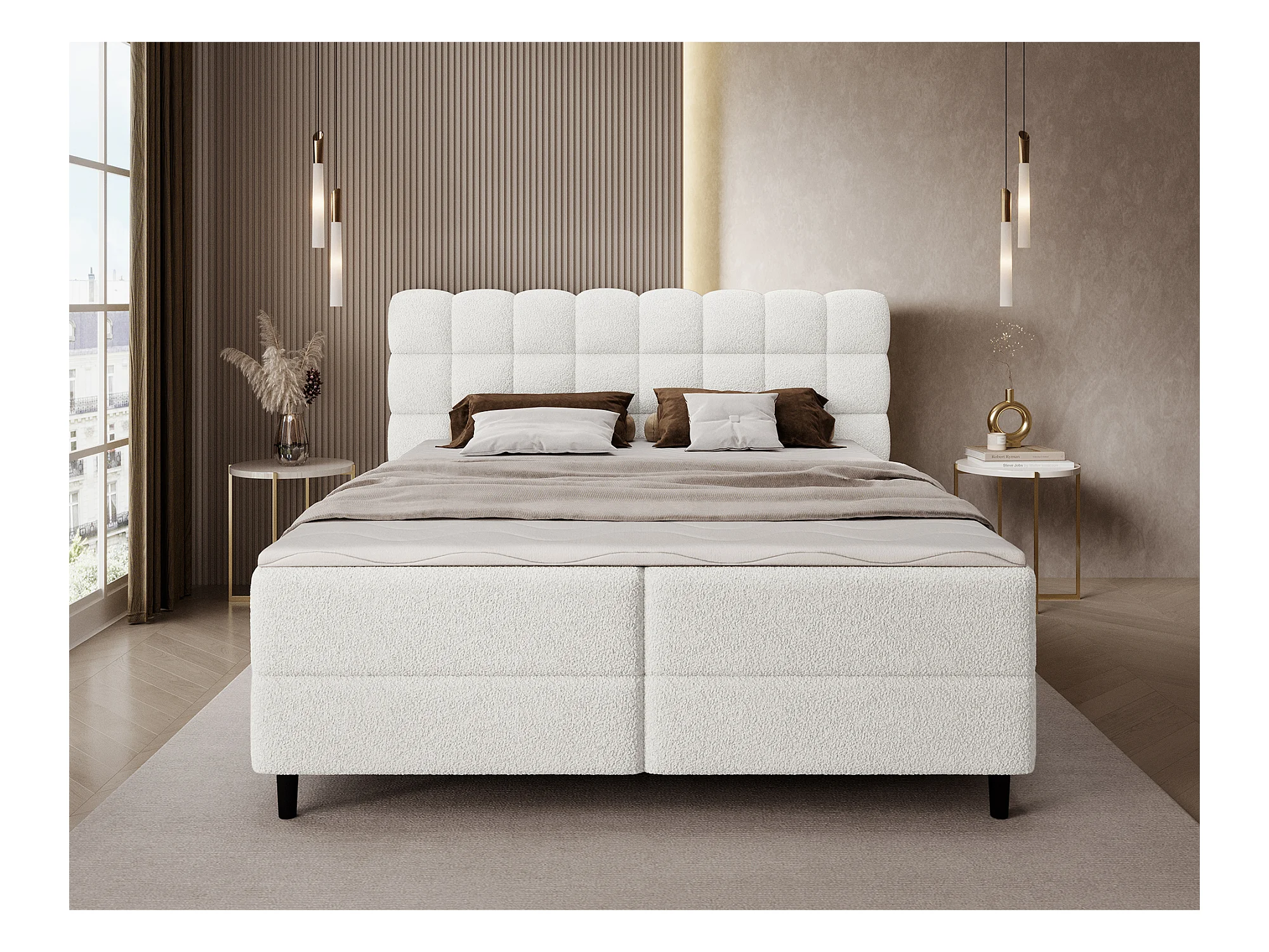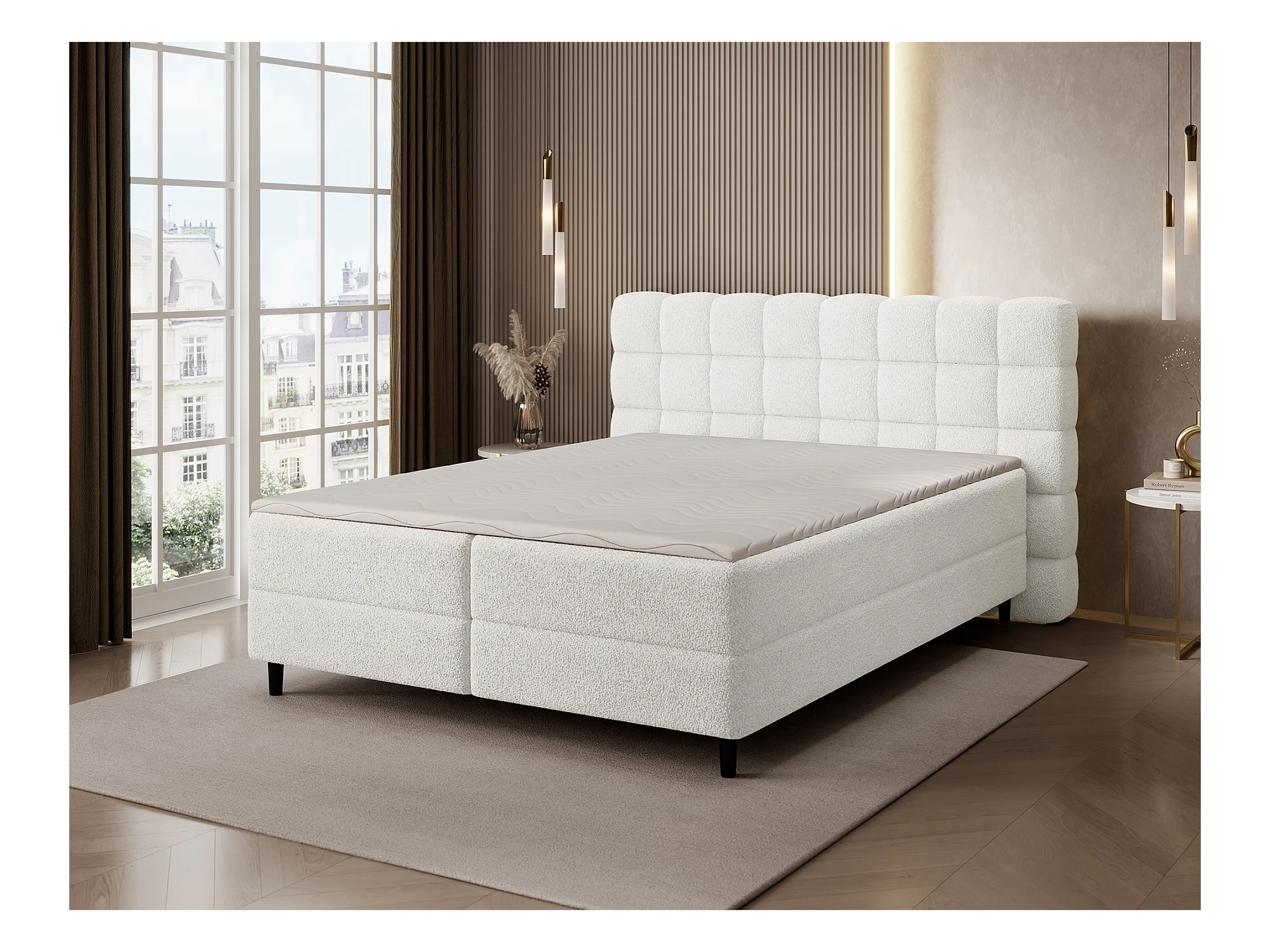 Boxspringbett Bernex/Bettkasten/Matratzen&Topper/Stoffbezug-Bouclé/Weiss