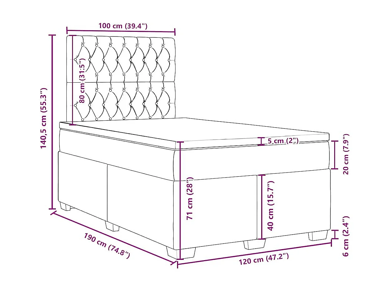 Boxspringbett mit Matratze Blau 120x190 cm Stoff