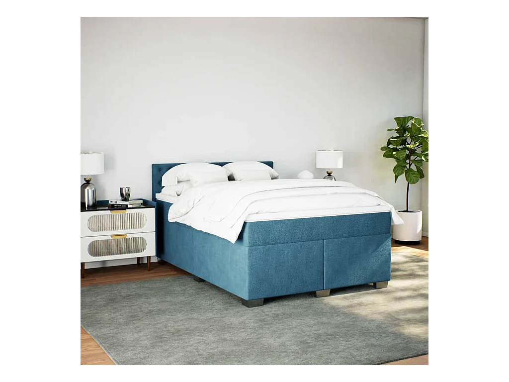 Boxspringbett mit Matratze Blau 160x200 cm Samt