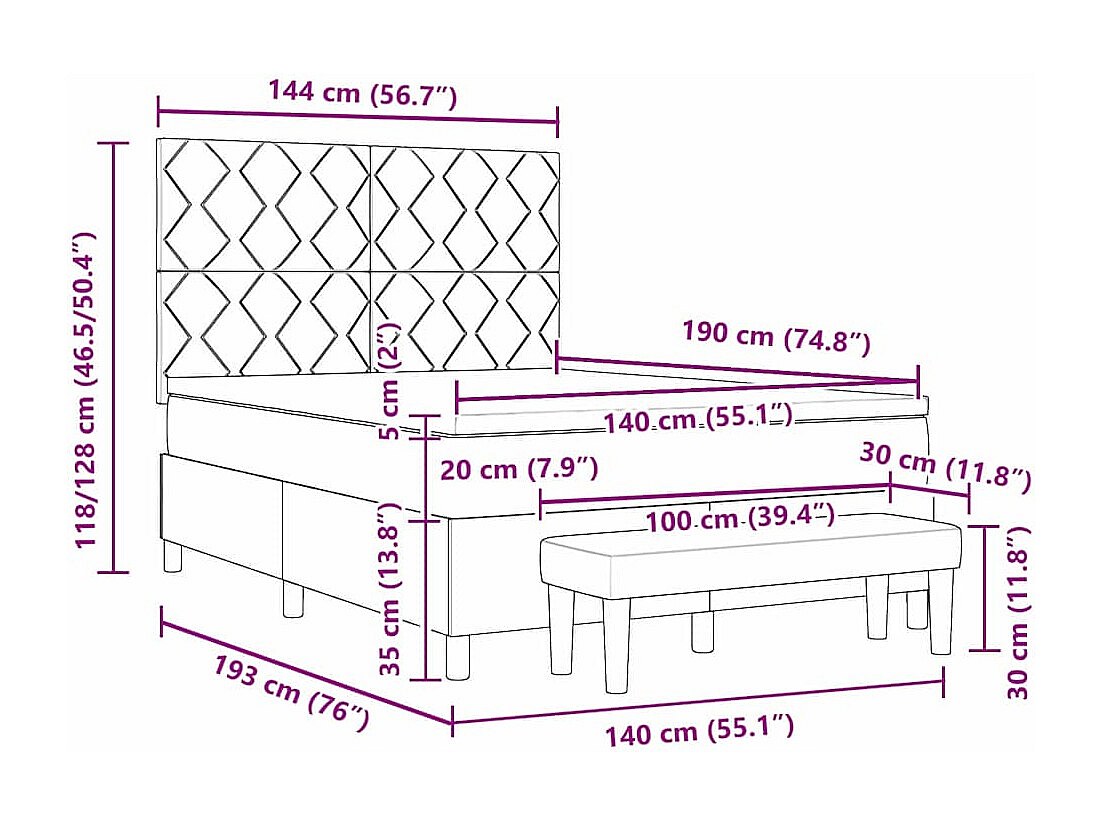 Boxspringbett mit Matratze Dunkelgrau 140 x 190 cm Stoff