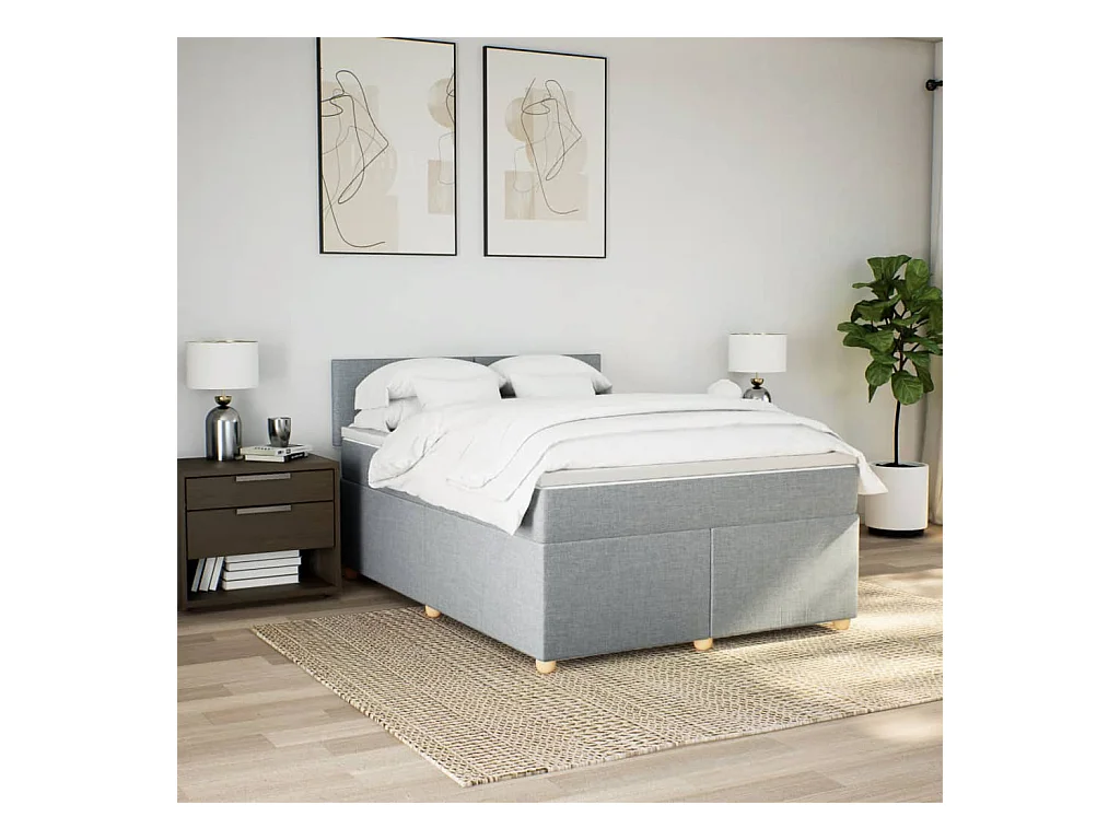 Boxspringbett mit Matratze Hellgrau 140x190 cm Stoff