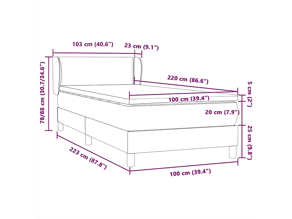 Boxspringbett mit Matratze Rosa 100x220 cm Samt