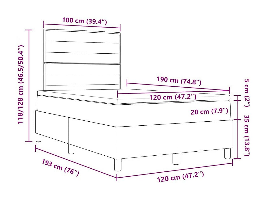 Boxspringbett mit Kopfteil Schwarz 120 x 190 cm Stoff