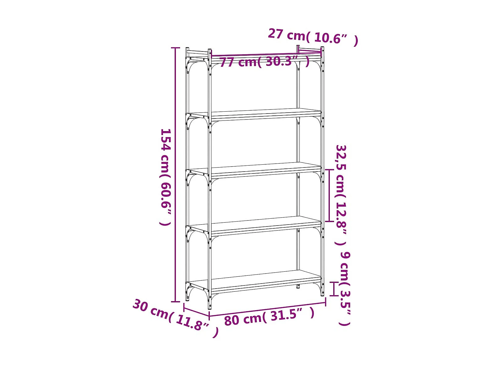 Bücherregal 5 Böden Braun Eiche-Optik 80x30x154cm Holzwerkstoff