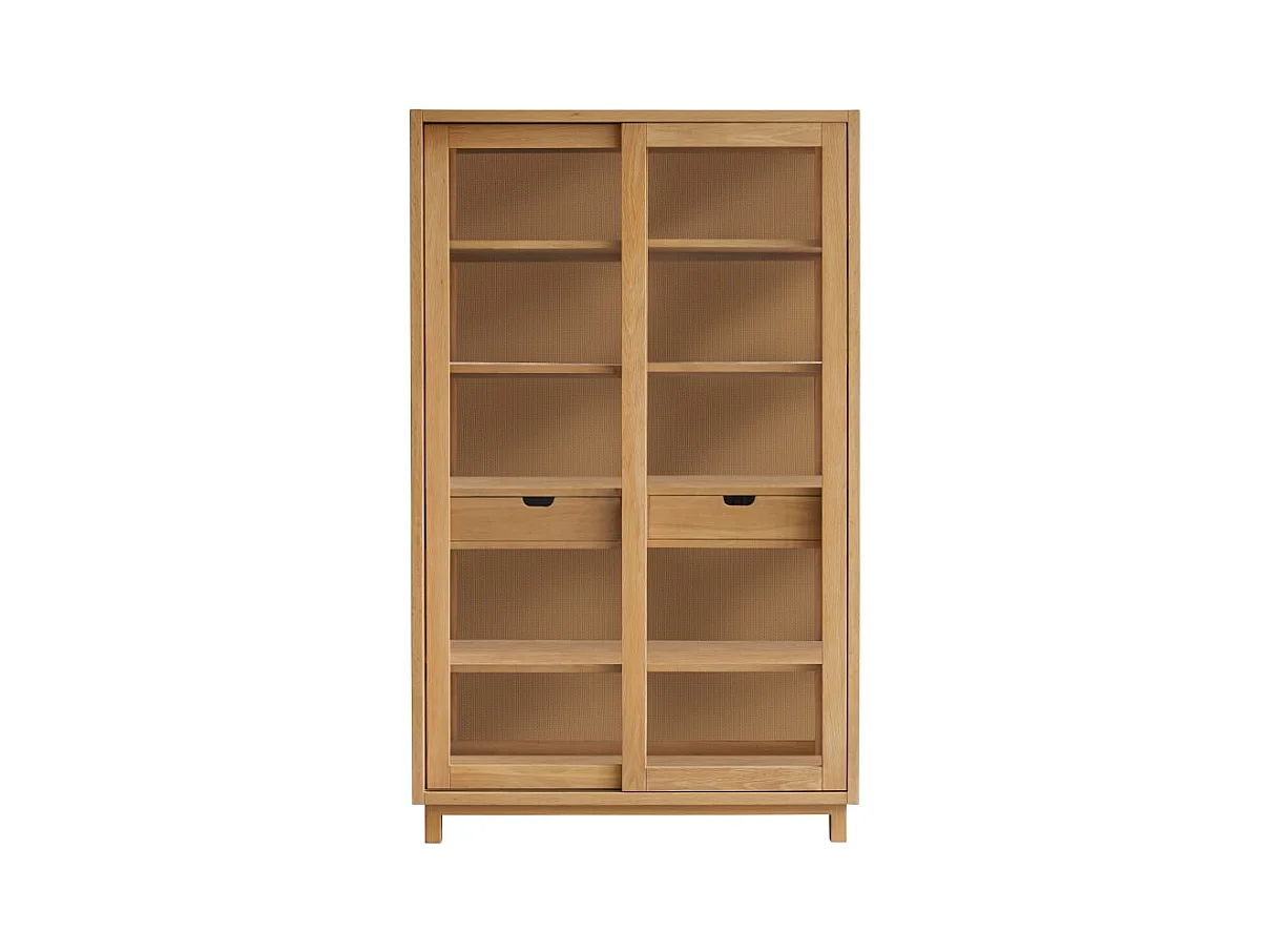 Hoher Bücherschrank Luis aus Ulmenholz und Rattangeflecht
